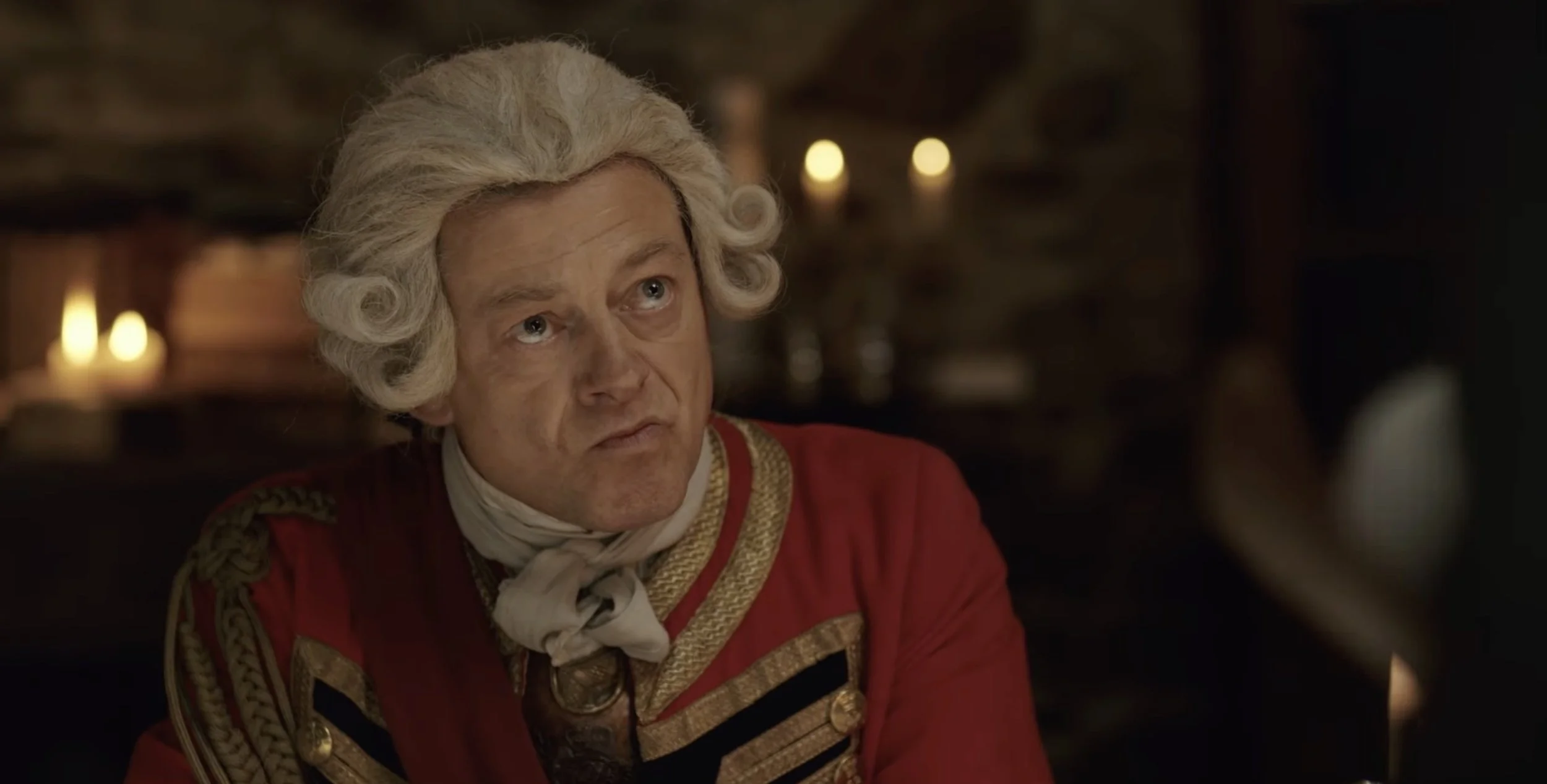 The newly released footage centers on Washington stepping forward to offer his services and pitch a battle strategy to General Edward Braddock, played by Andy Serkis.