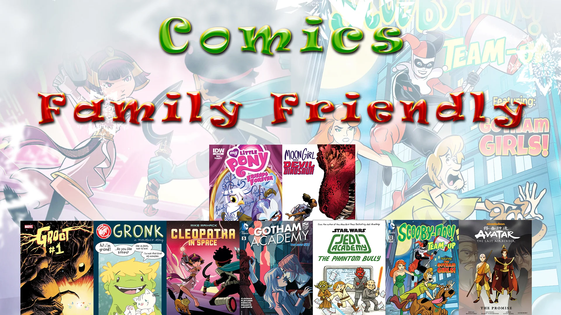 Picks Include: My Little Pony, Jedi Academy, Gotham Academy, Avatar The Last Airbender: The Rift, The Promise, The Search, Moon Girl and Devil Dinosaur, Scooby Doo Team Up, Cleopatra In Space, Bone, Gronk, Groot.