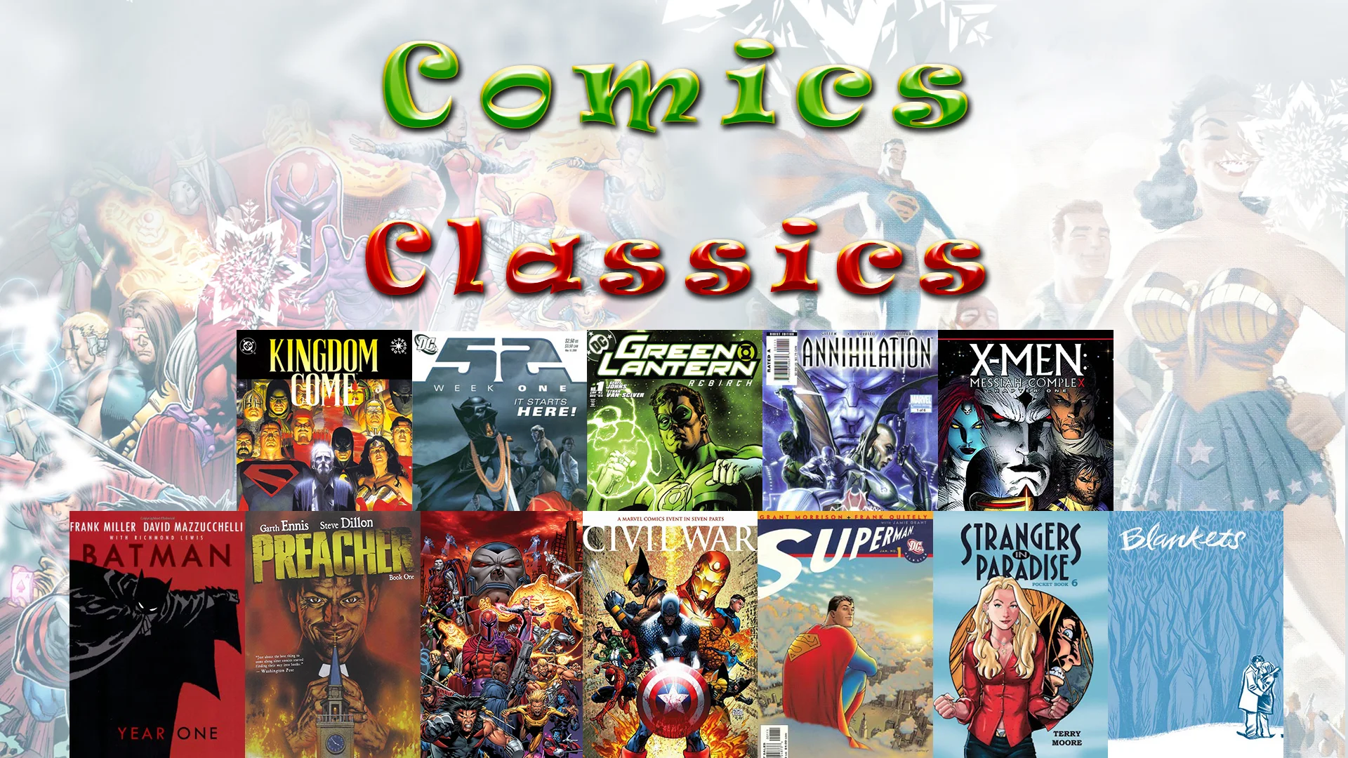 Picks Include: All Star Superman, New Frontier, Batman Year One, Preacher, Annihilation (Marvel), 52, Green Lantern Rebirth, Age of Apocalypse, Kingdom Come, Blankets, Civil War, X-Men Messiah Complex, Strangers in Paradise,