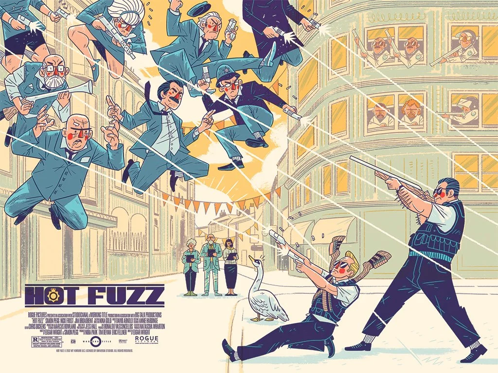 These three prints that make up Edgar Wright’s Cornetto Trilogy come from artist Logan Faerber. This is what he had to say about these prints: