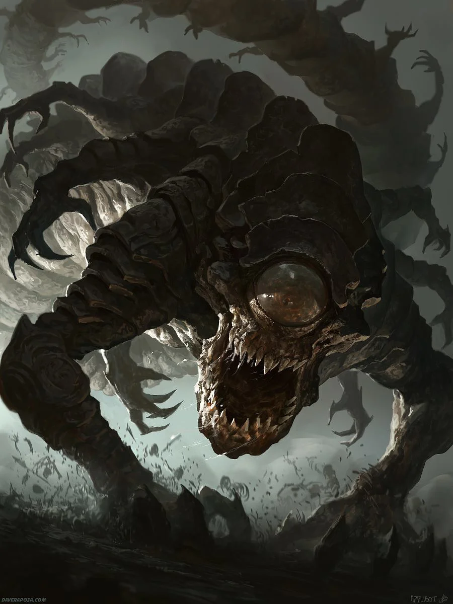 This is one of the gnarliest worm creature designs that I think I've ever seen. It comes from artist Dave Rapoza, and I love the craziness of it. The artist says he "wanted to channel some Super Metroid for it." I think he nailed it.