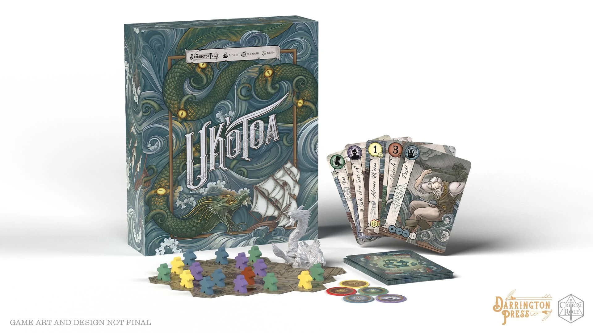 A battle for life and death on the high Lucidian seas! This flagship title from Darrington Press is a tactical game of semi-cooperative card play as factions of sailors vie to be the last claimed by the raging sea leviathan Uk’otoa. As the ship slowly falls into the ocean, you’ll have to run, push, and sacrifice others to win! Fans of Critical Role know Uk'otoa as the ex-patron of warlock Fjord (played by Travis Willingham). Who could say whether these tales hold any truth? Fjord isn’t telling.
