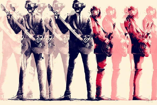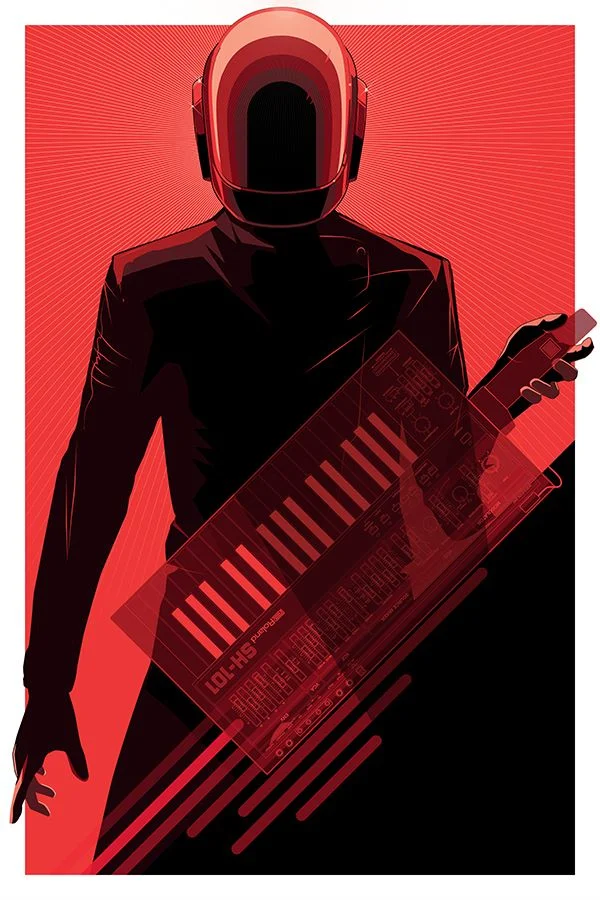 Here are a few very cool illustrations for an upcoming art show that is paying tribute to Daft Punk. It's called "Daft Punk Deux," and it opens on May 31st at the Gauntlet Gallery.