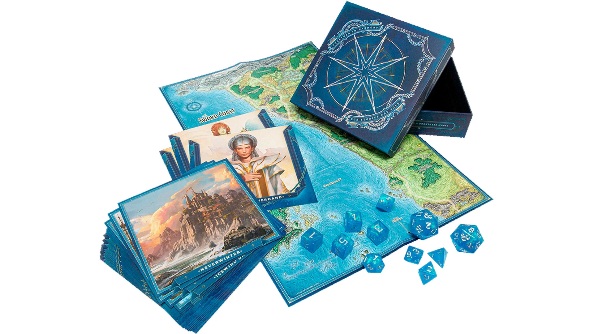 The new Forgotten Realms Laeral Silverhand's Explorer's Kit is a real treat. It gives Dungeons & Dragons players and DMs 11 dice, a nice felt-lined box for rolling, and some cards full of lore. Plus, a map of the Sword Coast which is always handy. Wizards of the Coast was kind enough to send me a set and it’s great.