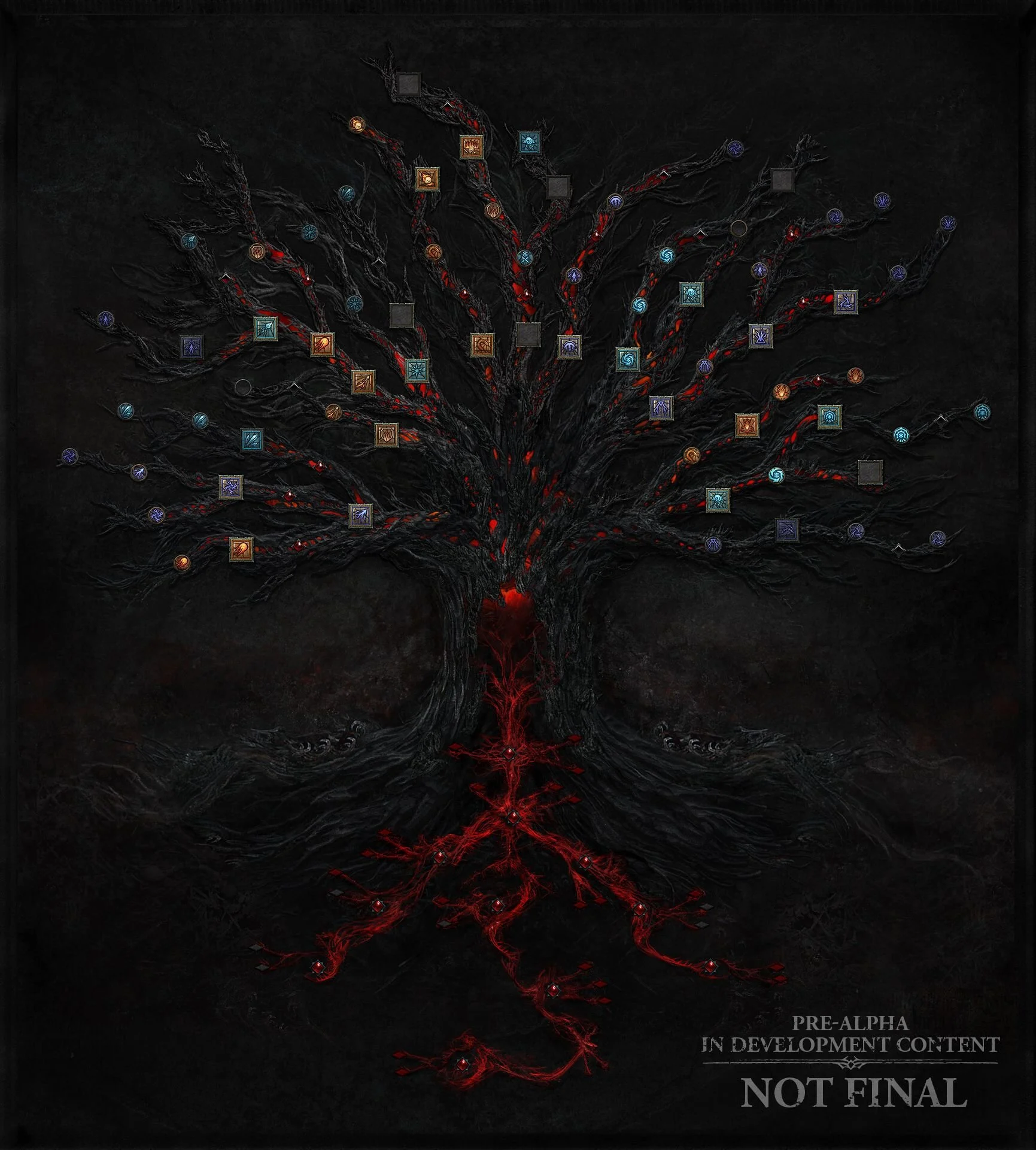 Now, let’s talk about Skills. The team agreed that the current Skill progression system felt too simple and lackluster. Well, they’ve been reworking things to look like the Sorceress skill tree pictured below. The upper Skills are bought with Skill Points earned by leveling up. New Skills are unlocked, new functionality can be added to skills, and Passive Points can be unlocked for the lower part of the tree called the Passive section. The Passive section is more about general character upgrades. The team does point out that players will not be able to unlock the entirety of their Skill Tree. Instead, you’ll be able to get about 30-40% of the Tree’s nodes.