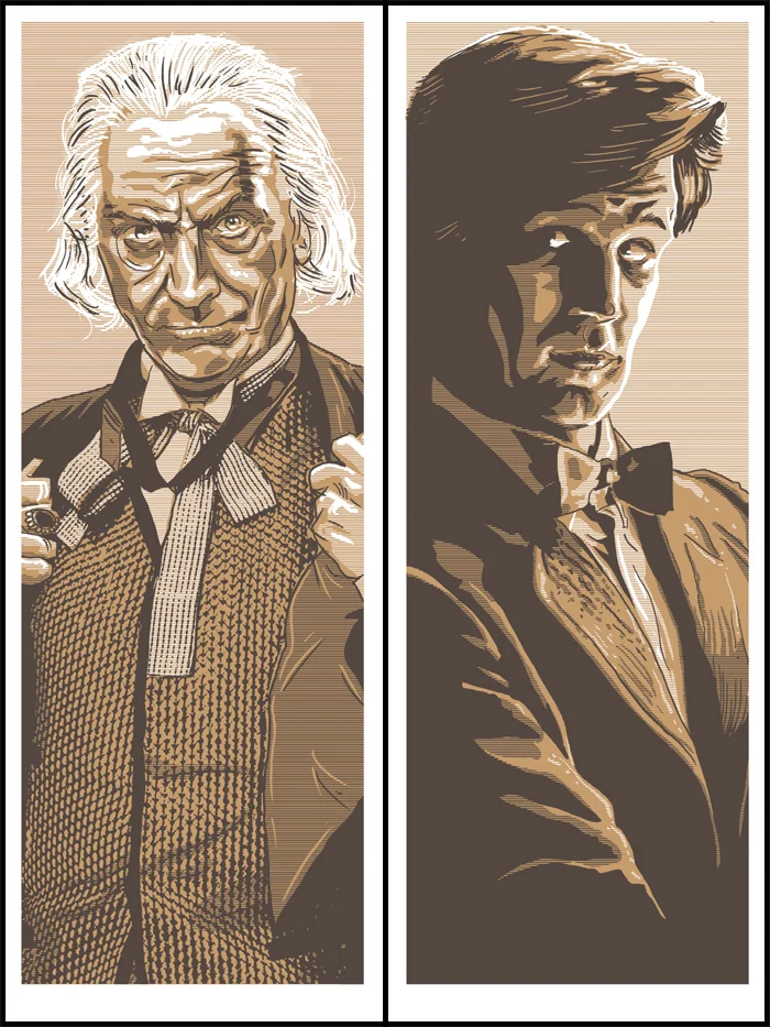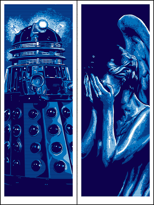 Check out this awesomely cool series of Doctor Who portraits created by artist Tim Doyle. I was late to the game with Doctor Who, but it quickly became one of my favorite series, and I'm so happy that it's still around. I hope it never ends. I love this set of illustrations featuring several of the Doctors and villains from the show. My favorite Doctor so far is Matt Smith, and my favorite villains are the weeping angels.