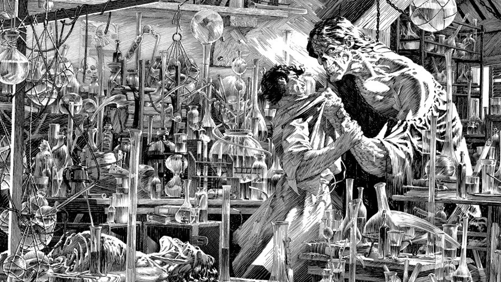I love Bernie Wrightson’s Frankenstein illustrations! They are absolutely beautiful, and it’s not hard at all to imagine Jones looking like this version of the legendary character. Here are a few illustrations for you to check out below: