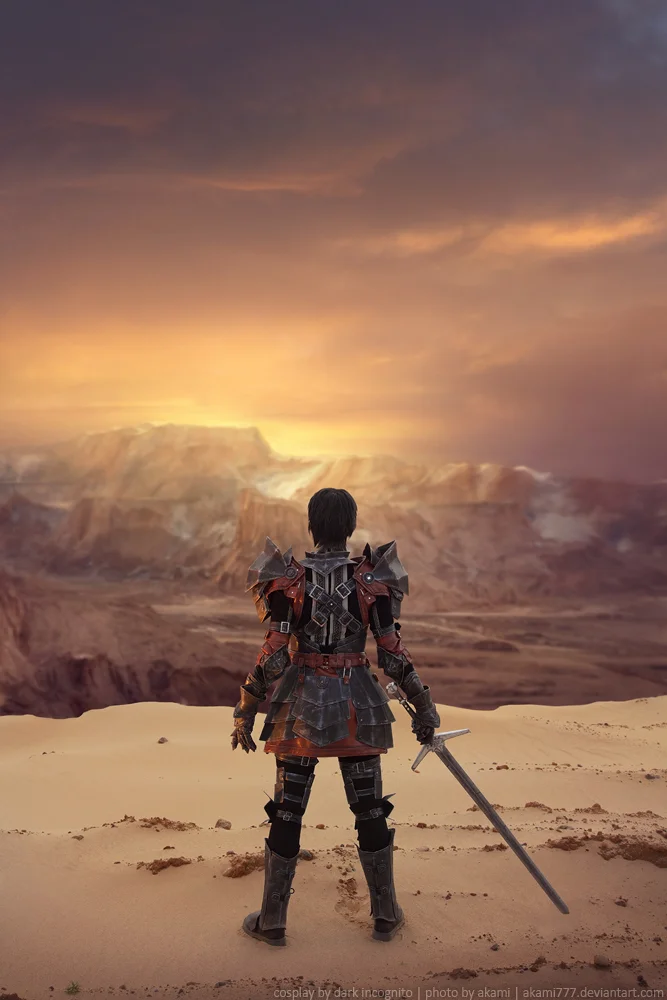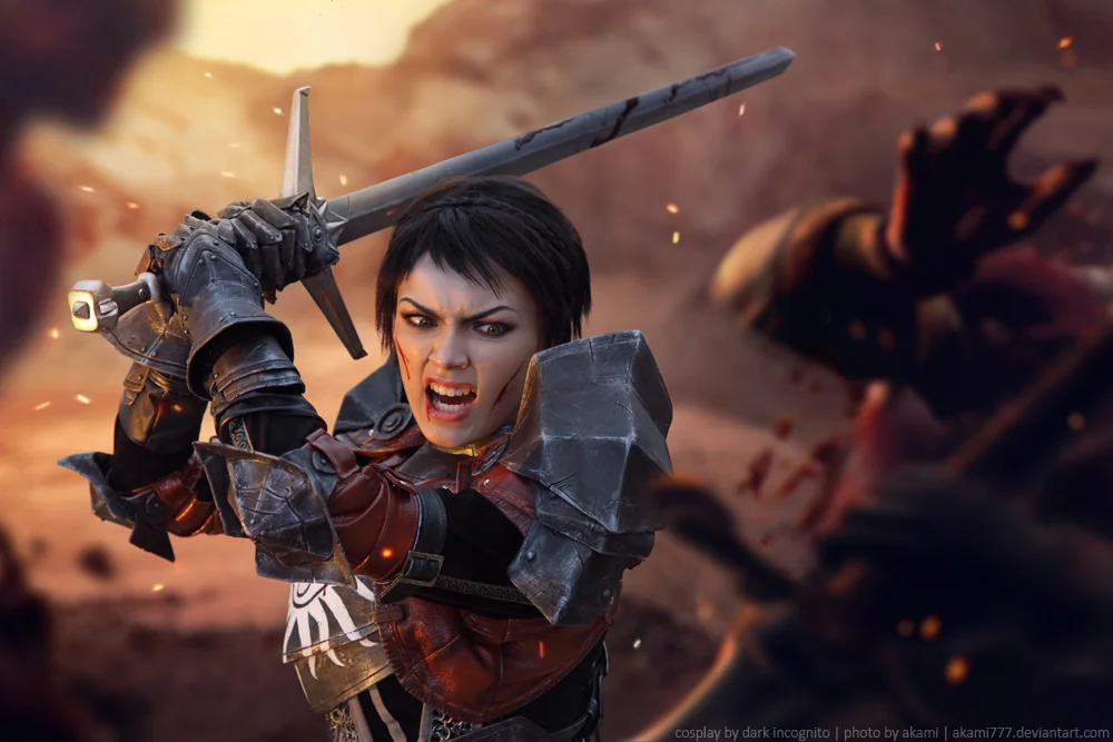As I start my second playthrough of Dragon Age Inquisition, I am immediately reminded of how much I missed Cassandra. By far my favorite character in the game, she is one of the fiercest warriors in Thedas, yet at the same time probably the most loyal to you and your cause. Cosplayer Dark Incognito and photographer Alexandra Kaminskaya have recreated her perfectly in this beautiful set of photos. The armor is flush with detail, as is the representation of Cassandra's trademark braid and scar. The backdrop is stunning, and I love the faint trace of what looks like Darkspawn in the background of the photo above. If you'd like to see more of their work, you can see Dark Incognito's here and Alexandra Kaminskaya's here.