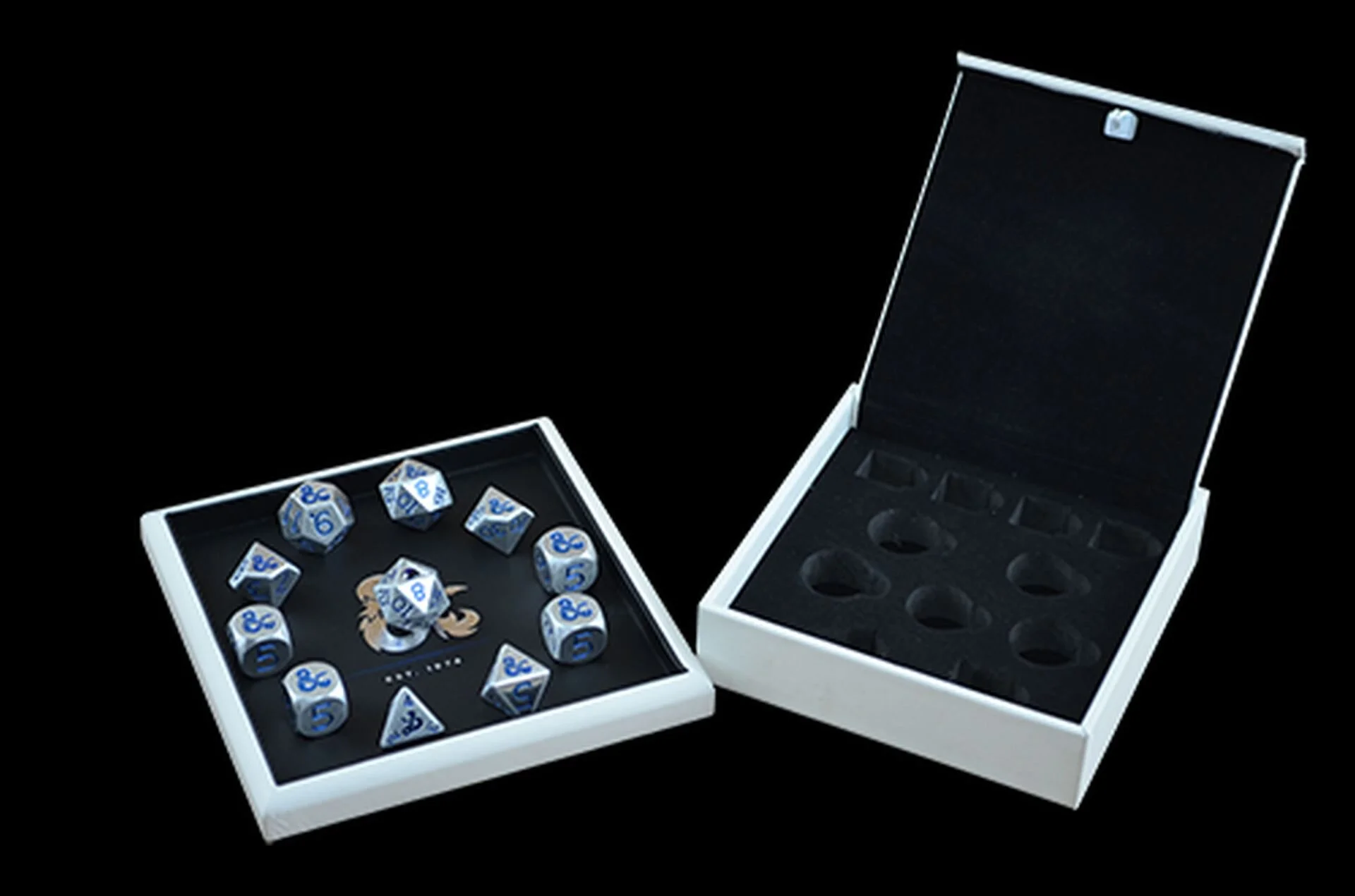 “When the D&D team realized the sapphire is the traditional anniversary stone for both five years and forty-five years, and that adding a laboratory-created sapphire to a twenty-sided die wouldn’t jeopardize the integrity of a roll, we couldn’t pass up the chance to make something really cool to celebrate the milestones. The team put together a fun product for our fans that includes art and newly updated stats for sapphire dragons, making these classic dragons ready for play in your next D&D session.”