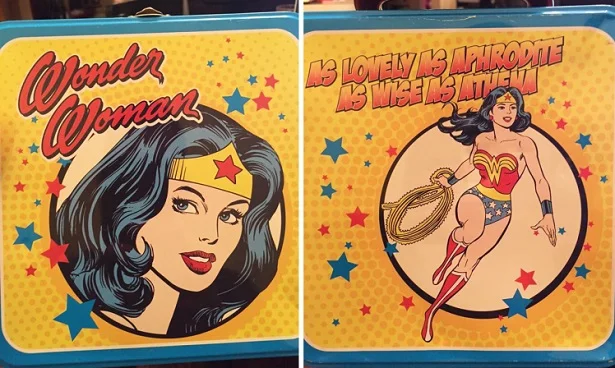 No! Superheroes DO NOT "certainly" fall into that category! Are they insane?! As you can see in the images below, the lunchbox shows absolutely no violence whatsoever. Wonder Woman has a huge smile while she runs with her lasso of truth, which she doesn't even use as a weapon. The other image is comic book style portrait of the character. What the hell is so offensive or violent about that? She's a freakin' superhero that saves lives, and she's a role model for young ladies.