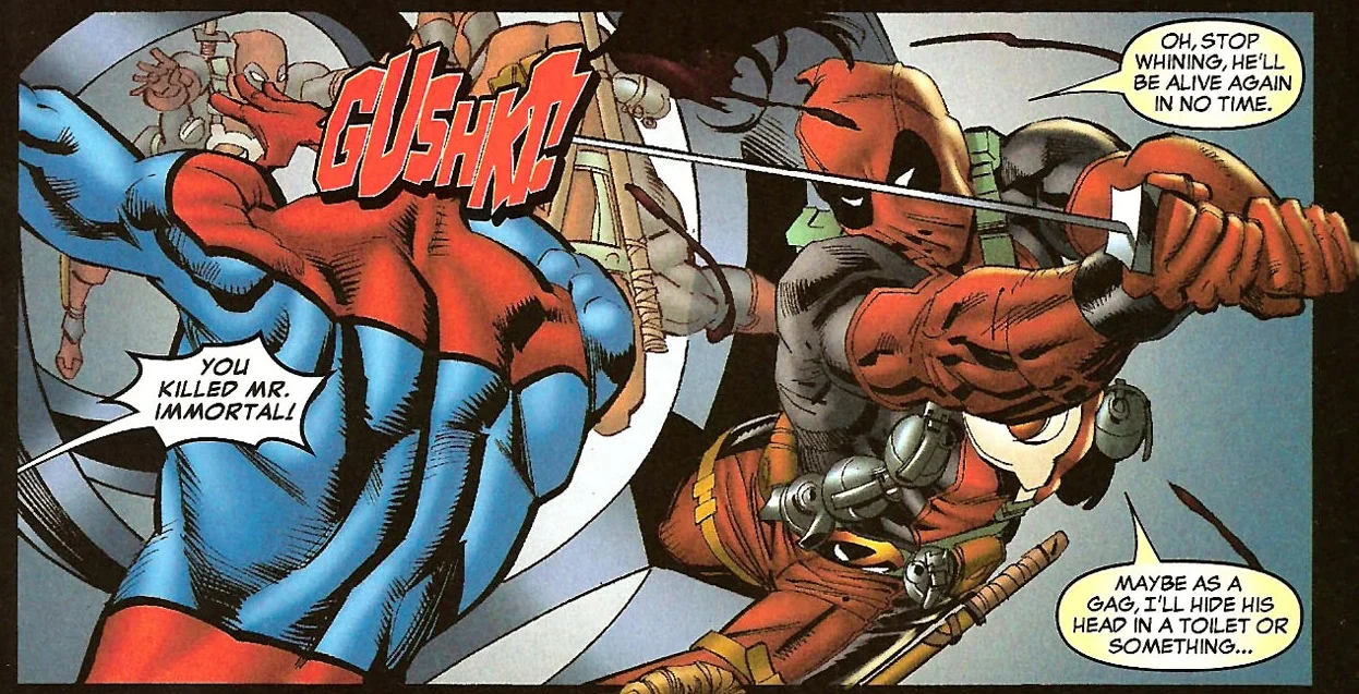 Deadpool’s confusion about his own past is practically a meta joke between the writers who have helmed him. So many storylines have been retconned, rewritten, or flat out ignored that it’s really hard to give a legitimate telling of the character's past. In one telling he was a discharged American soldier, but in another he claims to be Canadian. He’s killed the entire Marvel universe, but then everyone’s still alive, He’s also teamed up with other incarnations of himself that exist in different multiverses, like his zombie self, Headpool.