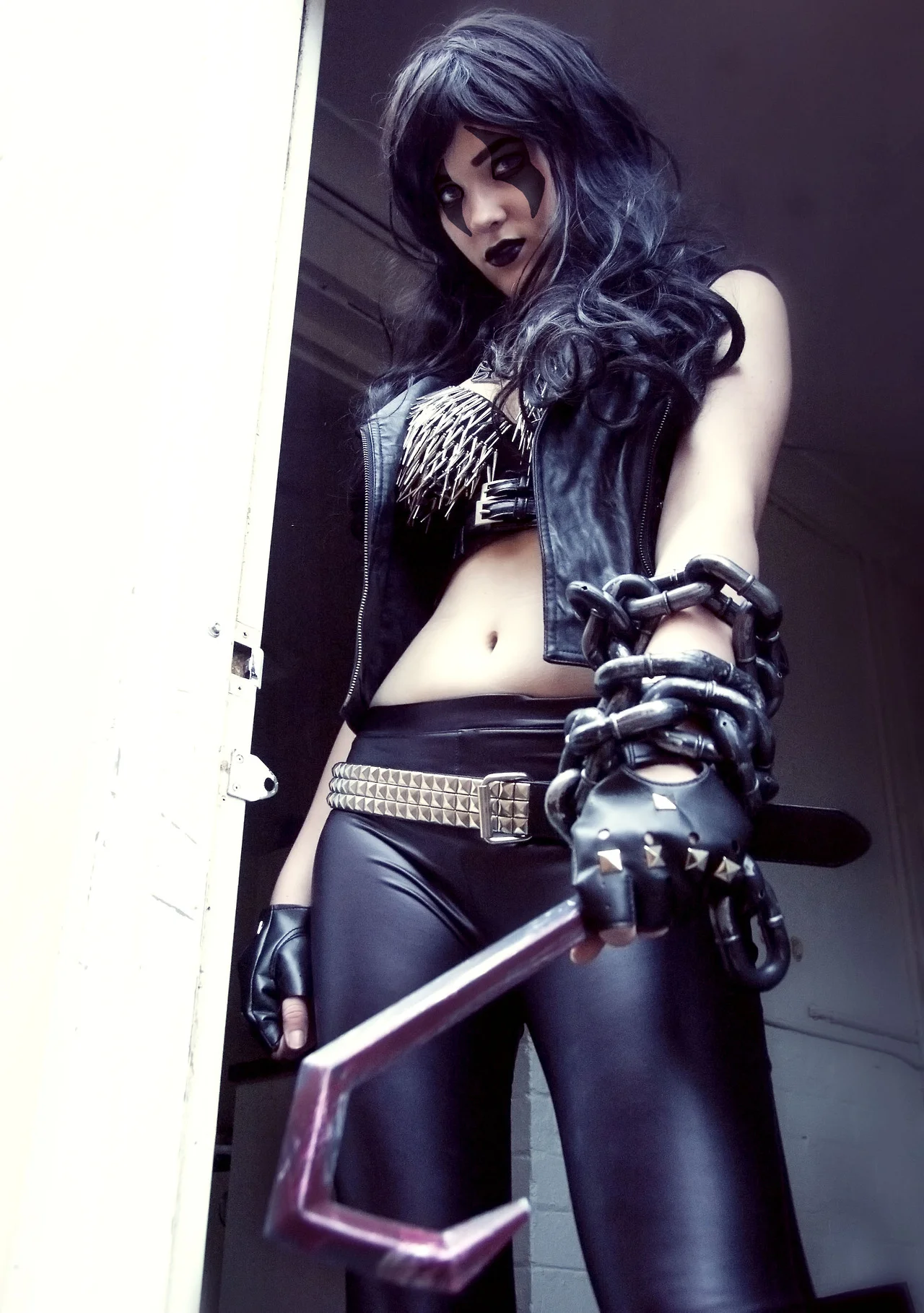 Eve Beauregard captures Lobo's raunchy, villainous attitude in this femme cosplay. She's got the chain, the leather, the snarl, the hair, and the makeup down, all she is missing is the facial stubble. Normally a femme version of a character shows more skin, but not in this case. Lobo normally only wears an open vest and pants, or just pants and no shirt at all. I'm pretty sure Lobo would approve of this cosplay and have a few lewd remarks for Beauregard.