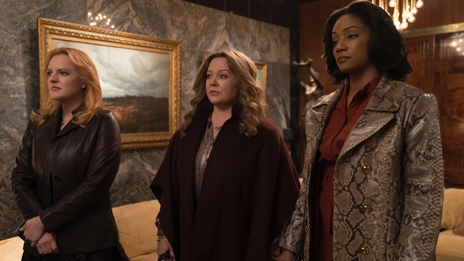 The movie stars Melissa McCarthy, Tiffany Haddish, and Elisabeth Moss as as the wives of Irish mobsters who take over organized crime operations in the 1970s in New York City's Hell's Kitchen neighborhood after the FBI arrests their husbands.