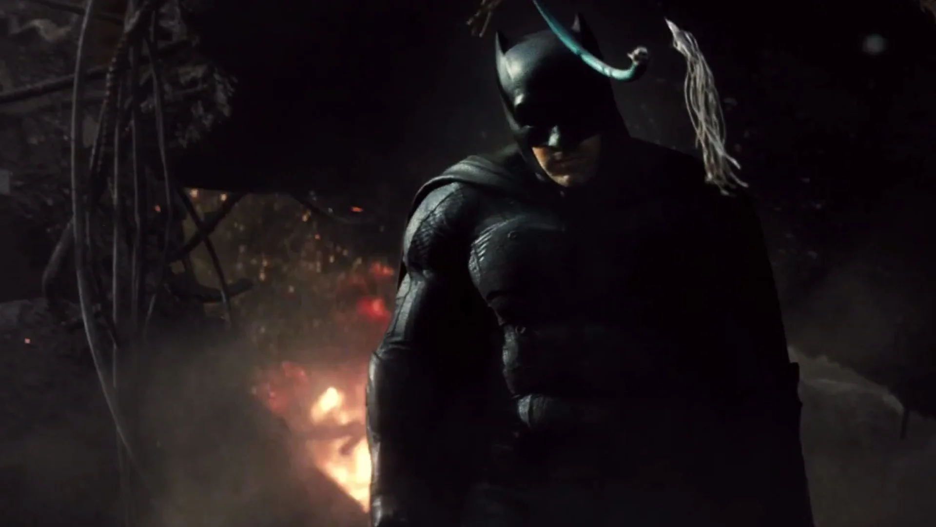 Just then, the film turns to slow-motion as Bruce Wayne hurls one of the razor-sharp, bat-logo-shaped throwing stars he used in BvS at Allen. Allen looks at it inquisitively as it passes him in slow motion then, with a profound realization, grabs it out of the air. Silence, surprise, and then: “You’re the Batman?”
