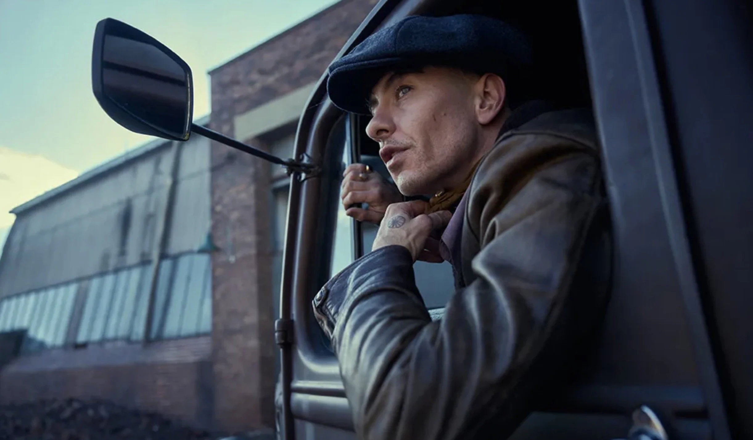 Here’s our first look at Barry Keoghan in Steven Knight’s Peaky Blinders movie. In the image, we see his character driving a truck while sporting a cap and leather jacket.