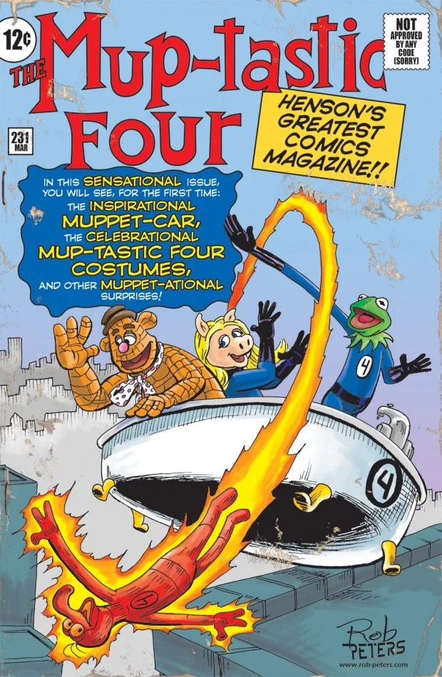 The latest illustration from artist Marco D' Alfonso features Fozzie Bear reimagined as the Joker from classic comic The Killing Joke. Like most of the artist's work, this piece is part of The Line is Drawn collection from CBR. This last collection featured Muppets being mashed together with comic books. I included a couple others from the series below for you to check out.