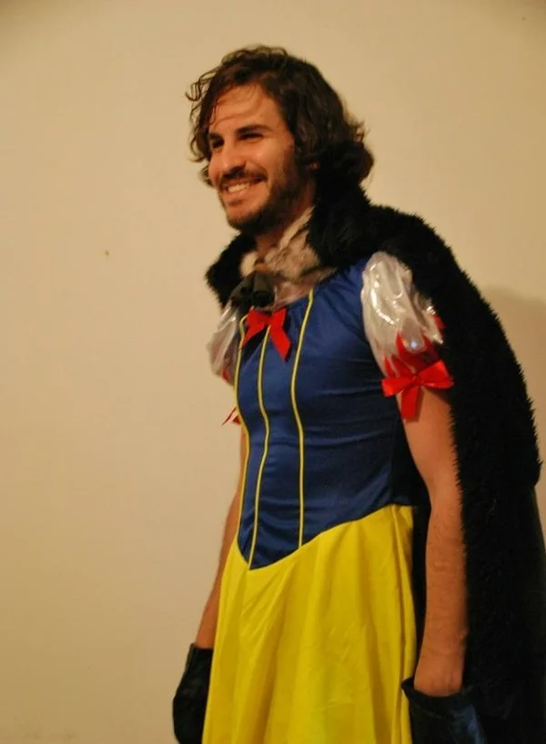 This is cosplayer Yuval Avrami. He kinda looks like Kit Harrington. So what does he do? He puts together this hilarious mashup cosplay of Game of Throne's Jon Snow and Disney's Snow White and he appropriately calls it Jon Snow White. As you can see in the photos, he hilariously pulls it off.