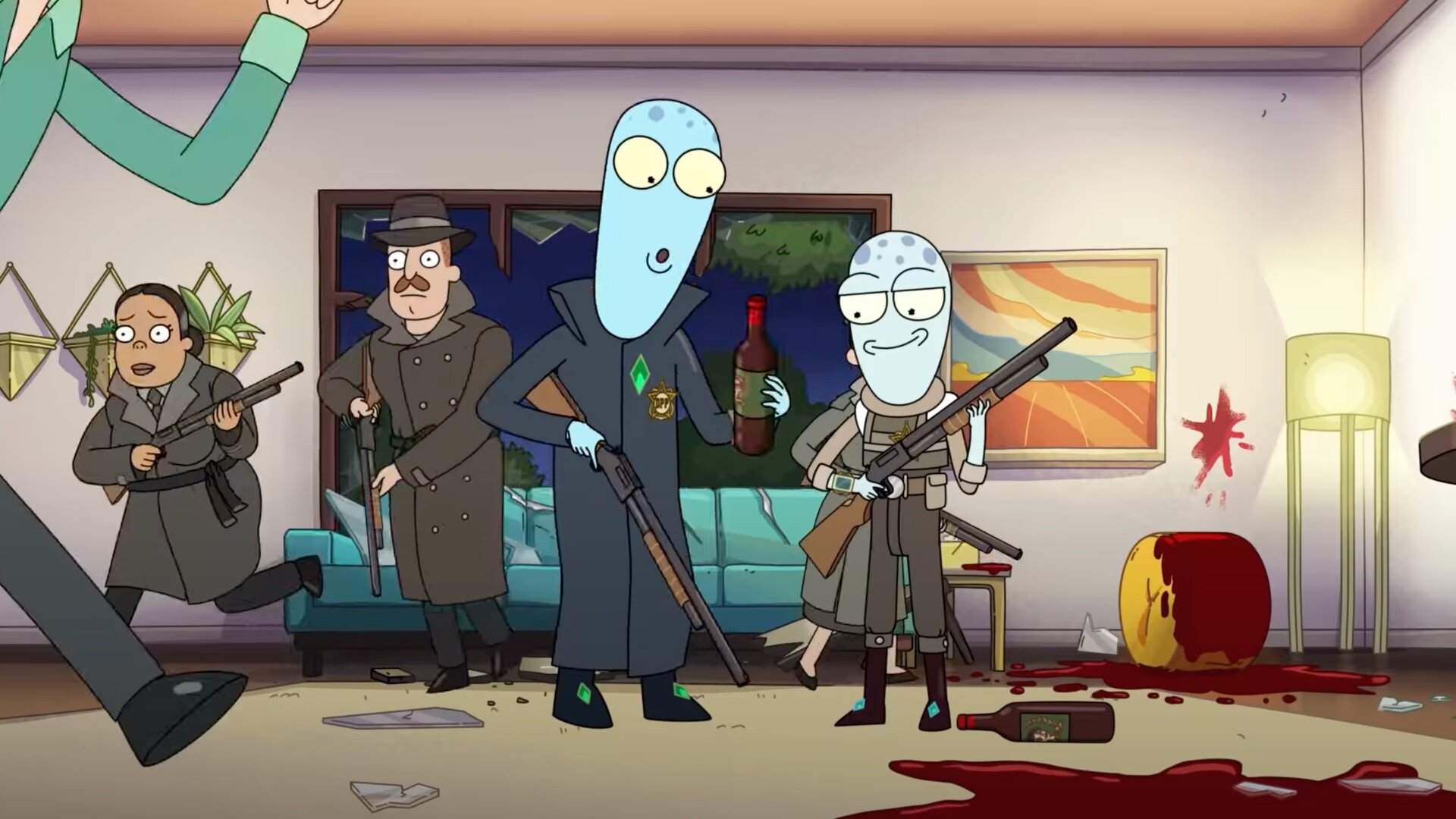 The series was co-created by Justin Roiland (Rick & Morty) and Mike McMahan (Rick & Morty) and as you’ll see, this next season will take the alien characters beyond the borders of the suburbs that they live in, and there’s going to be storylines involving “big dick energy” and “unholy creations” that turn people into wine. I’ll let you see what that is when you watch the trailer.