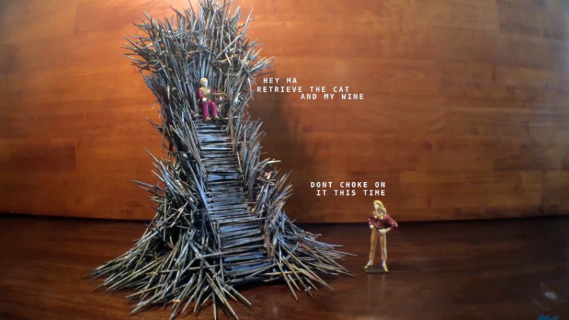 Above is an illustration created by artist Marc Simonetti and it shows us the true look of the Iron Throne. A fan by the name of D. Schuyler Burks took the Iron Throne design even further by building a miniature version model of it and as you’ll see… it’s awesome! Below the image you will find a video showing it off.