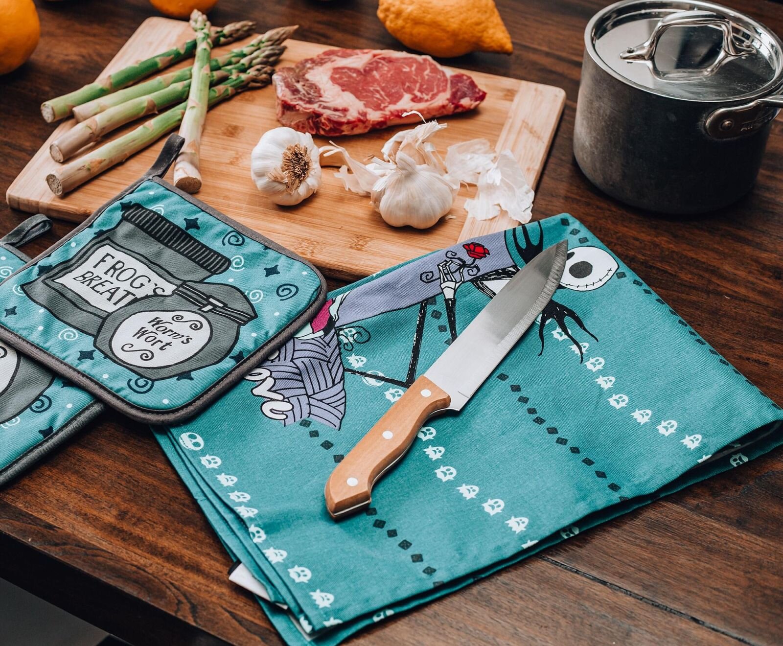 Whether you believe it’s a Halloween movie, Christmas movie, Thanksgiving movie, or something else, it’s never a bad time to enjoy some Nightmare Before Christmas kitchenware. Toynk (affiliate link) recently revealed a slew of new officially licensed gear available. There’s an apron, dish towels, pot holders, and even an oven mitt that all look very cute. What’s more is that you can save a lot of money by getting everything in a set for only $40.