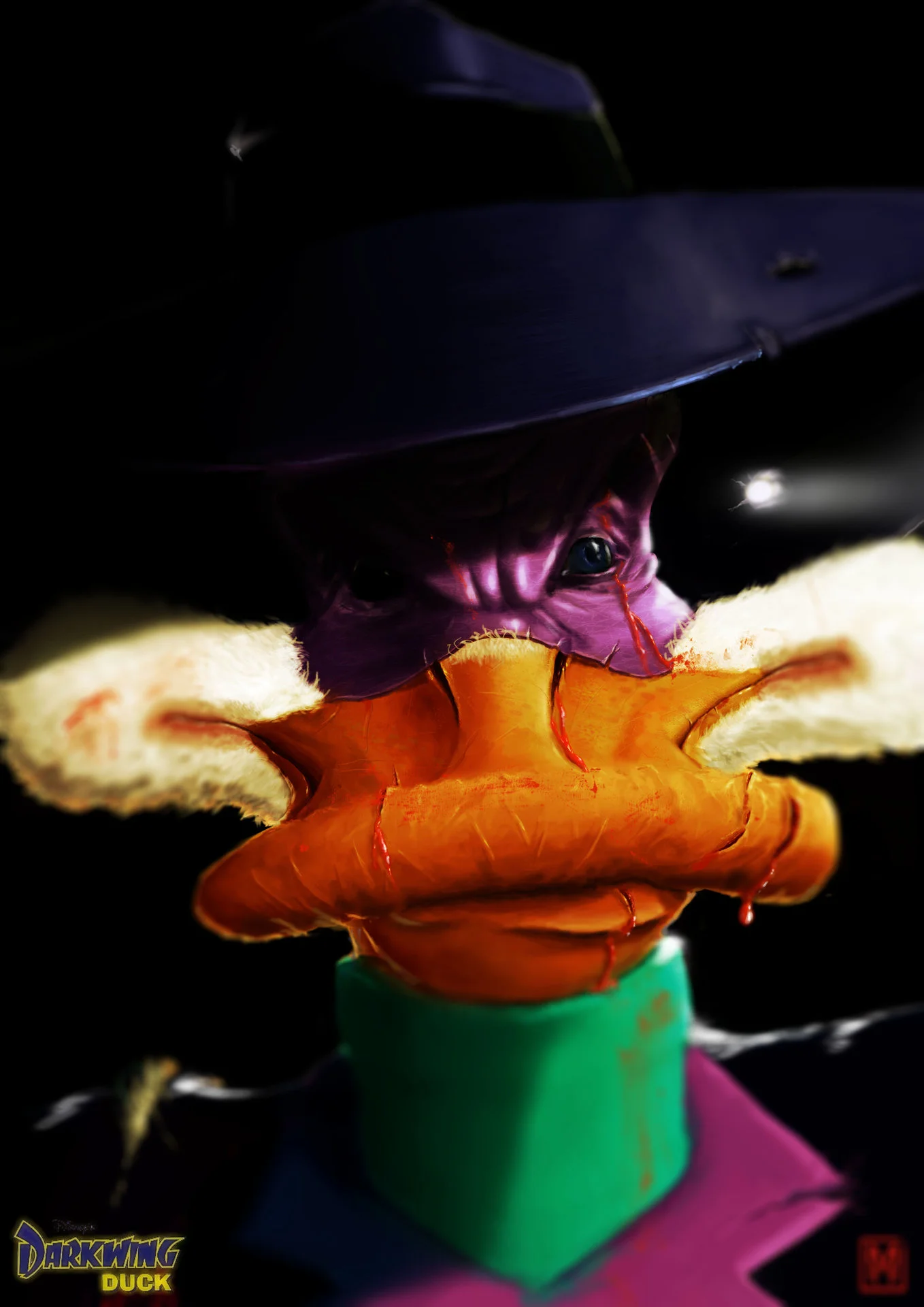 To check out his previous art clicking on the following links: Darkwing Duck, GizmoDuck and NegaDuck. I enjoy Mueller’s art style, and I’d love to see someone make a dark and gritty fan film with these characters.