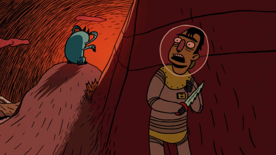 I came across this very entertaining animated short for you to watch called The Terrible Thing of Alpha-9! It was created by Jake Armstrong for his graduation film project. The story follows a space bounty-hunter who travels to a distant planet to kill a terrible monster. Things don't go as smoothly as the bounty hunter would have hoped. The short was made back in 2009, but has just recently found its way online. It is done in a fun and loose style of animation, and I enjoyed the cartoony yet dark character designs. I absolutely loved the ending of this!