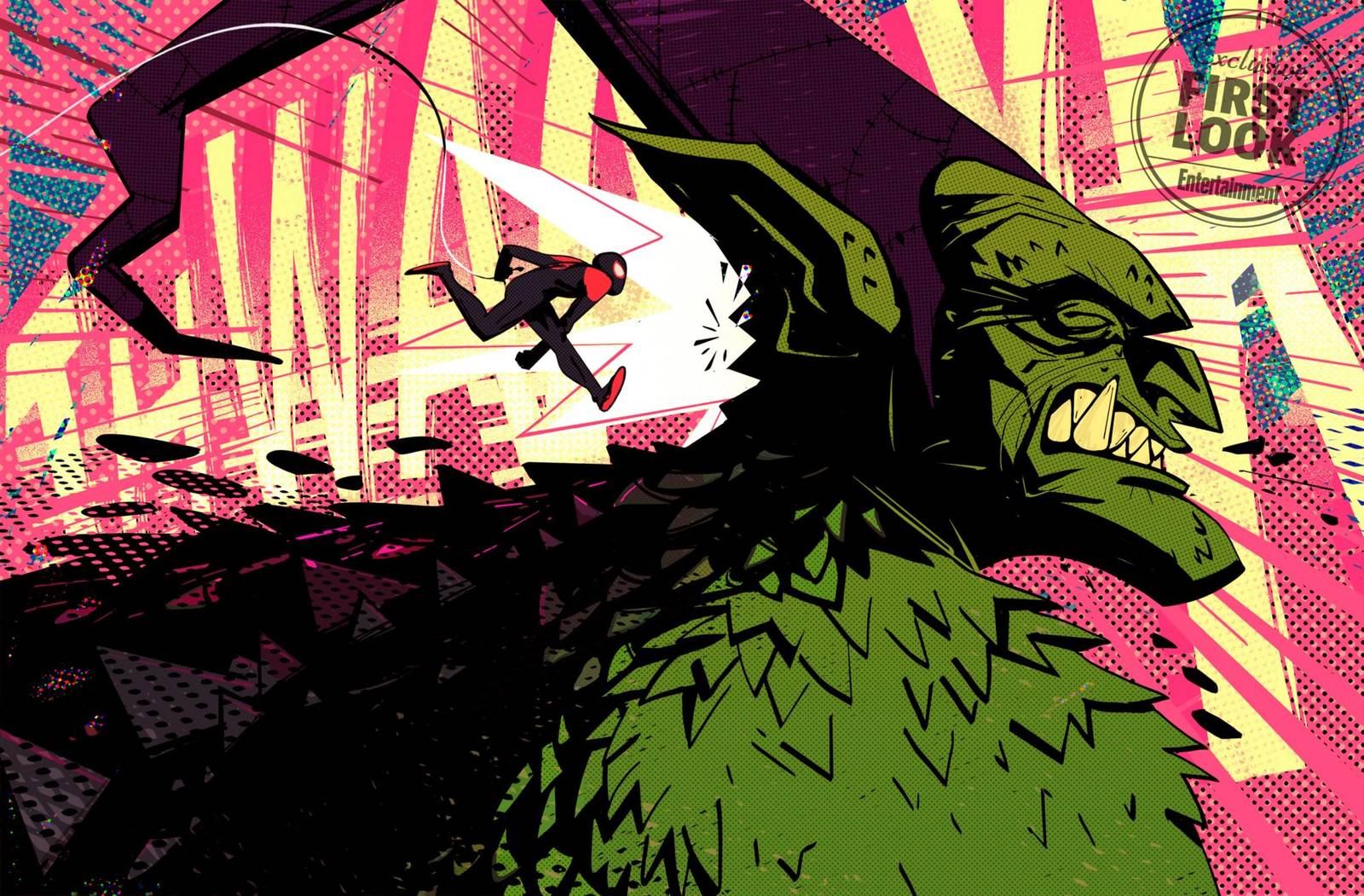 Anyway, thanks to EW, we have a fun piece of concept art from the film to share with you featuring Spider-Man punching a giant Green Goblin in the back of his head. When talking about the film and his character, voice actor, Shameik Moore, who plays Miles Morales says: