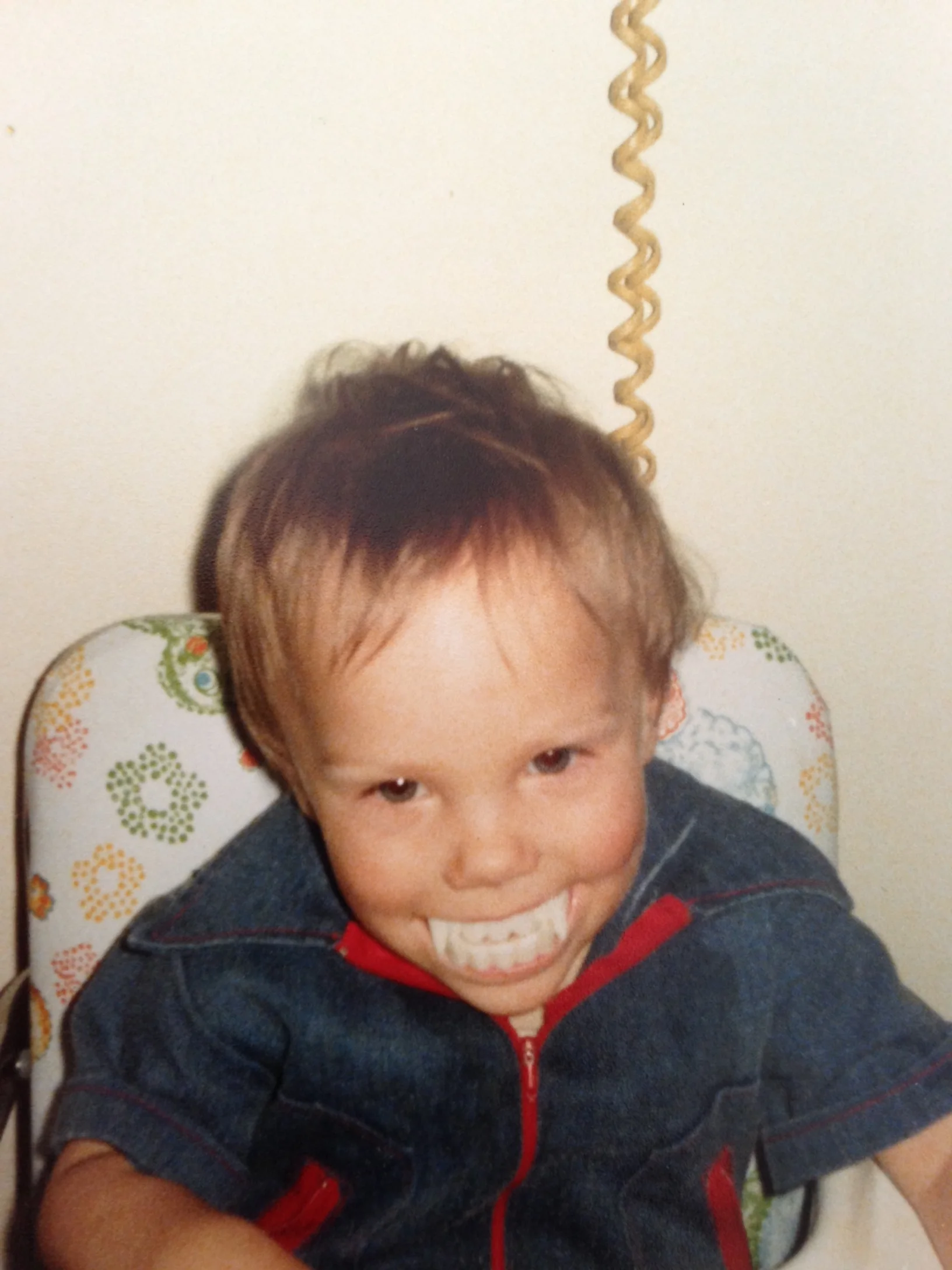 I've included a couple of pictures of me to prove just how far back my history goes with with this stuff. The one above is of me as a toddler sporting some awesome teeth. The one at the top is of me on Halloween, years later, all decked out as a crazy looking vampire type demon. This is one of my favorite and most memorable Halloween costumes ever. This was a very different and innovative vampire look at the time that my dad dreamed up. I was terrifying other kids while trick 'r treating, and I even recall adults being a little shocked by the look. You could tell that they never saw a vampire quite like that before. I soaked up the attention, and loved it. I've always liked taking my costumes and stories to dark and different places.