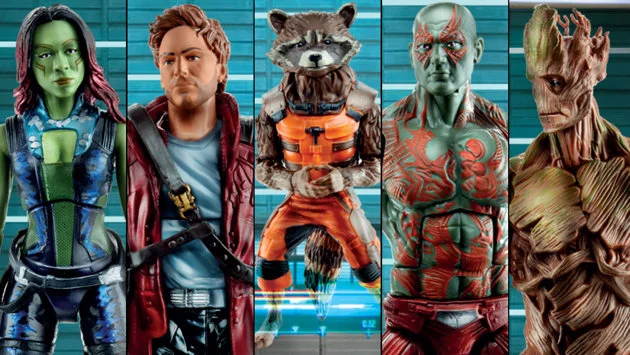 Hasbro's toy line includes seven figures, including Gamora (Zoe Saldana), Peter Quill/Star Lord (Chris Pratt), Rocket Raccoon (Bradley Cooper), Groot (Vin Diesel) and Drax the Destroyer (Dave Bautista). The other two figures will be unveiled Saturday at the 2014 Toy Fair.