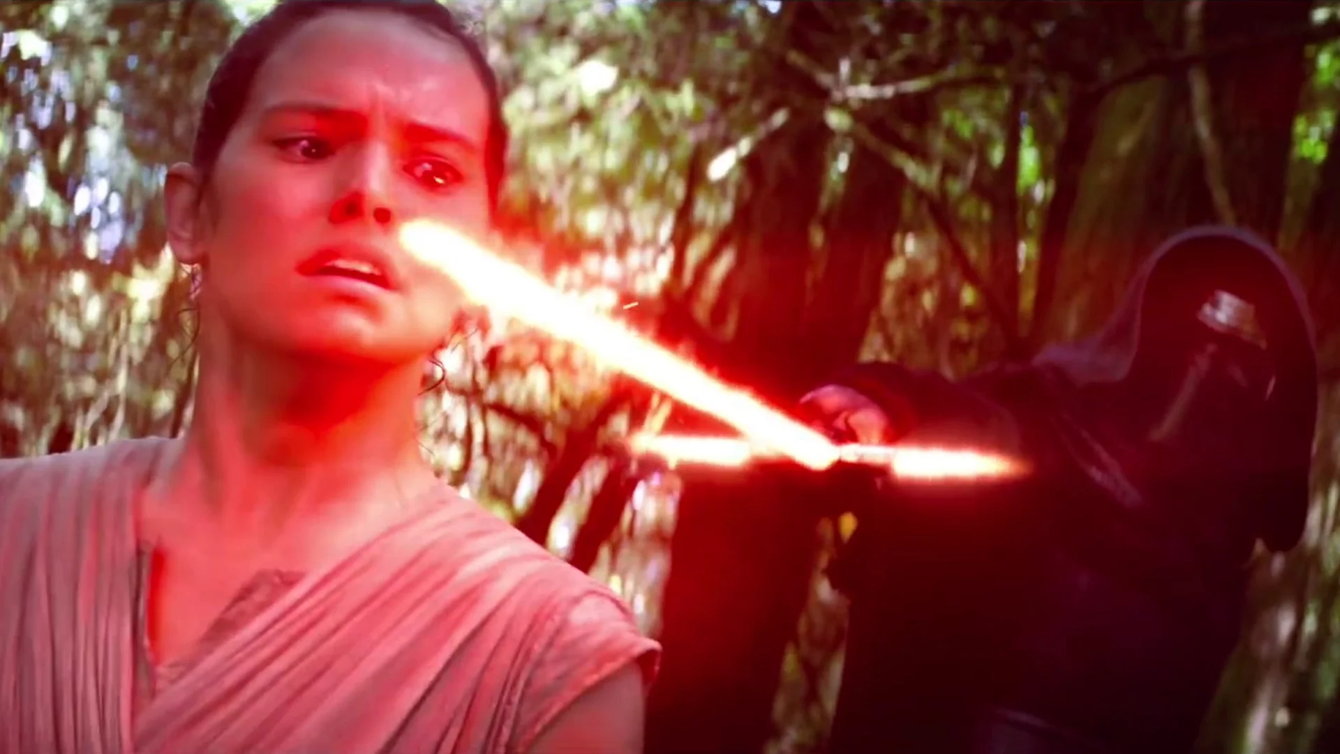 So it sounds like Rey to going to actually get into a lightsaber battle with Kylo Ren! There is a scene that pops up in many of the trailers that we’ve seen for the film of Kylo Ren holding a lightsaber up to Rey’s face from behind. It seems like that could lead into some kind of duel, it could be the end of the duel. One thing I didn’t realize that might include her wielding a lightsaber!