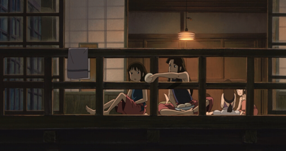 On a summer evening, Chihiro sits in a sweet little house and is surrounded by her friends. There are cookies and cheesecake. They drink hot tea and talk about the amazing experiences she has had. After all of her difficulties, Chihiro finally has a moment when she can relax and talk to her friends. For Miyazaki, food is the most comforting thing. Once again, he prepared hot drinks and desserts for his little character. After this relaxing moment, Chihiro is cheered up and prepared for her final test.