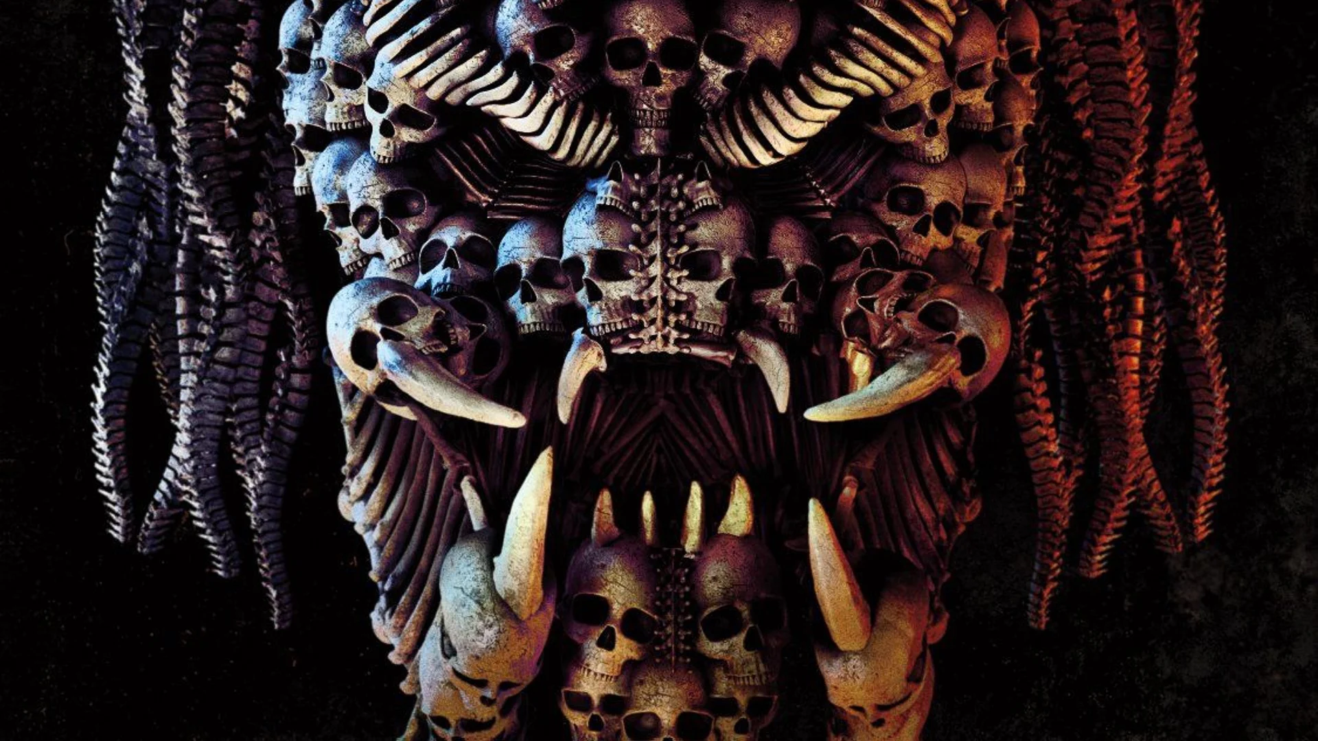 Here's the Comic-Con poster for Shane Black's The Predator! As you can see, the face of the predator is made up of the bones of its victims. It's a pretty cool poster design and it was revealed during the big panel for the film at the convention.
