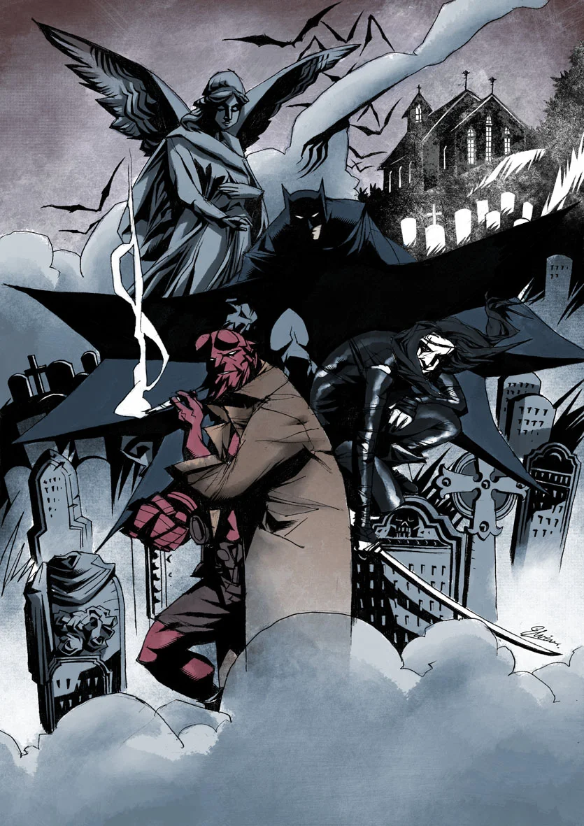 HEROES OF THE NIGHT Art Featuring Batman, Hellboy, and The Crow