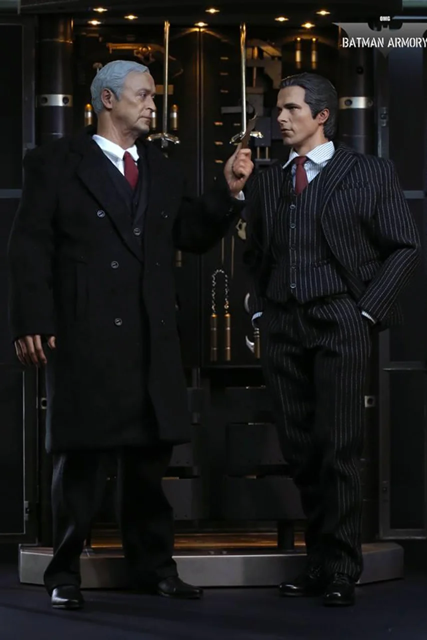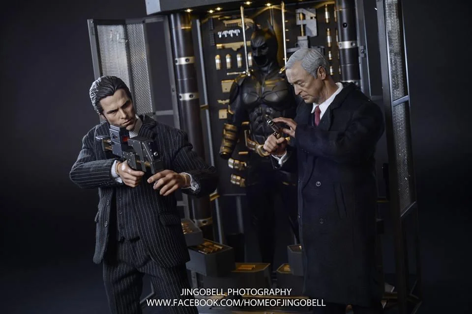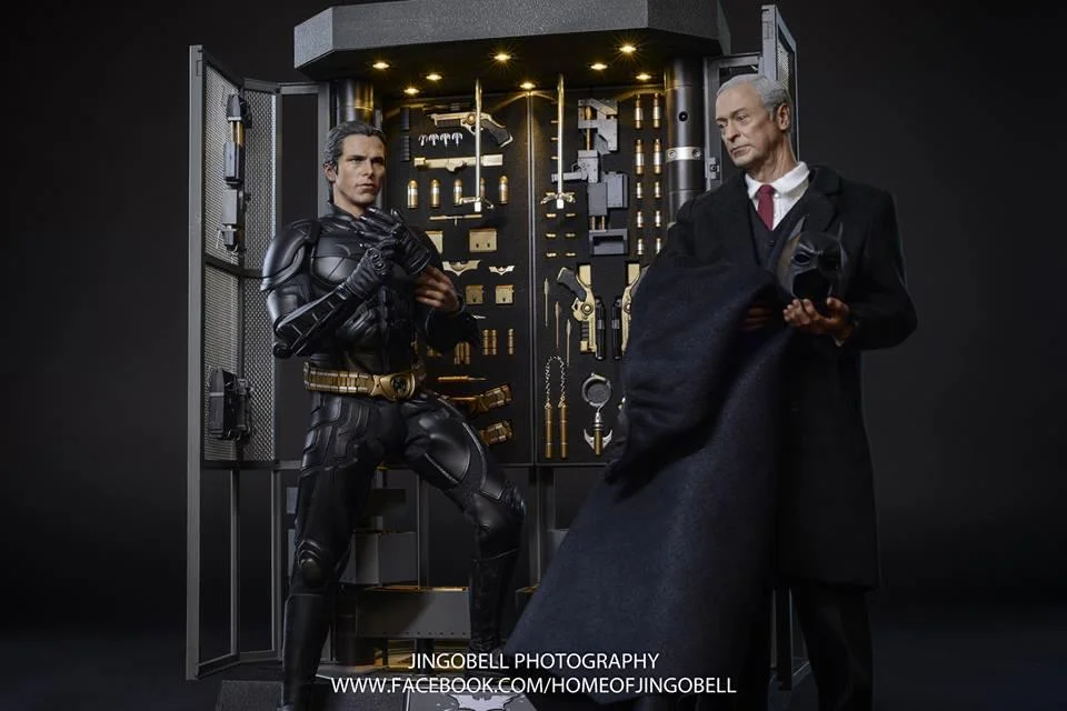 In The Dark Knight, Bruce Wayne has a secret underground lair that stood in for the Batcave while Wayne Manor was being rebuilt. It was a well-lit, rectangular room that was a stark contrast with the more familiar, cavernous and moody Batcave which would be finished in The Dark Knight Rises. The makeshift Batcave wasn’t without its charms, though. It was clean and functional, and Bruce Wayne’s armory housed all the badass Bat gadgets one could ever want. Every piece of that armory is faithfully recreated in Hot Toys’ 1/6 scale version that comes with both Bruce Wayne and Alfred Pennyworth.