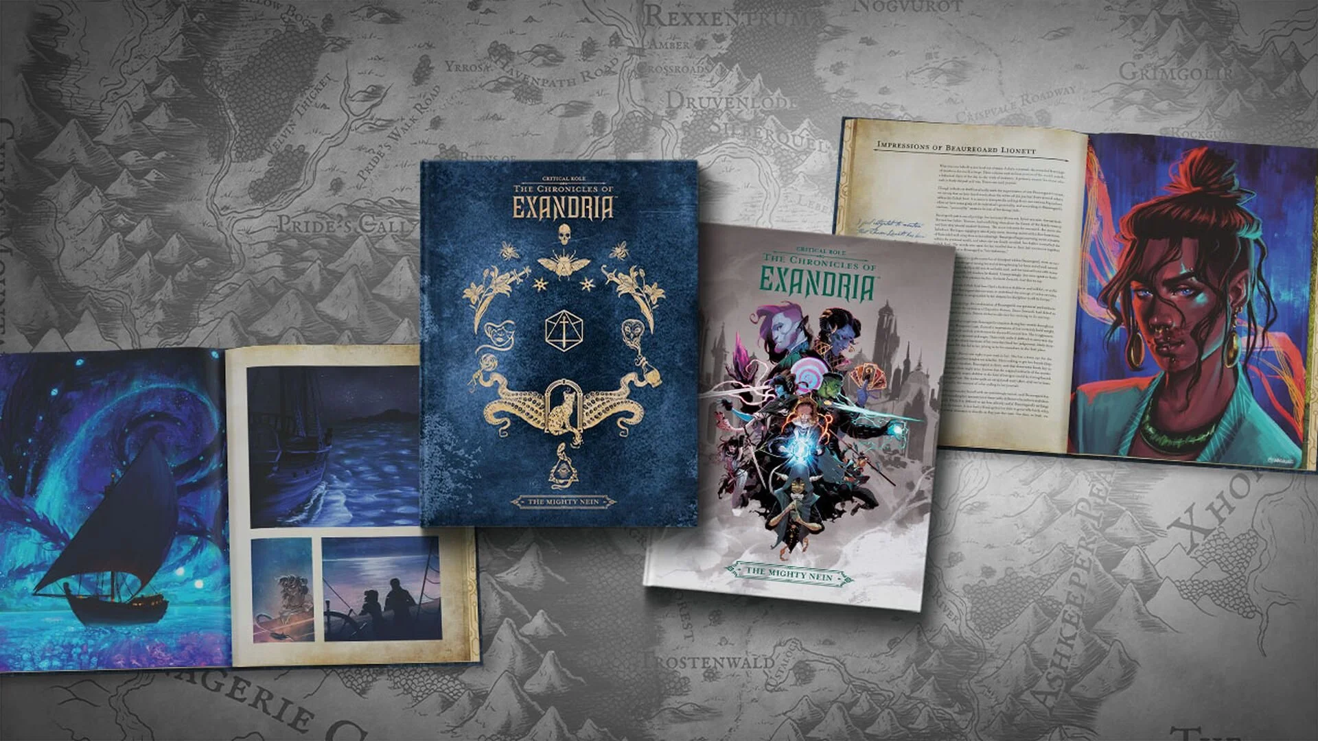 Critical Role: The Chronicles of Exandria – The Mighty Nein is a hardcover art collection spanning over 250 pages of beautiful artwork by friends and fans of the popular Dungeons & Dragons podcast Critical Role. The book will be available in standard and deluxe editions starting on June 2. The standard edition will be available from your favorite stores including Amazon while the deluxe edition (featuring an annotated cloth map of the Dwendalian Empire, a faux-leather foil-stamped cover, and more) will only be available from the Critical Role website.