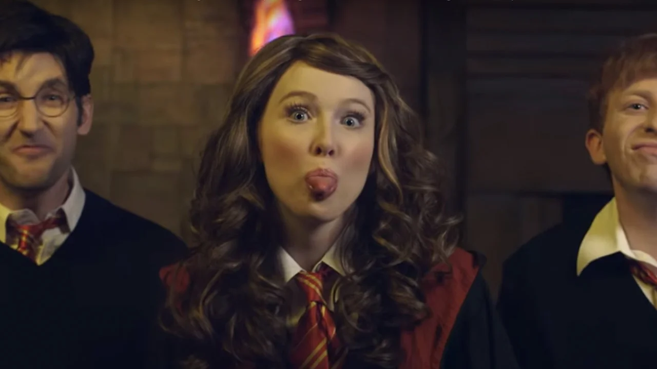 The video is part of the Princess Rap Battle series created by Whitney Avalon. In the clip, she plays Katniss, while Molly C. Quinn stars as Hermione.