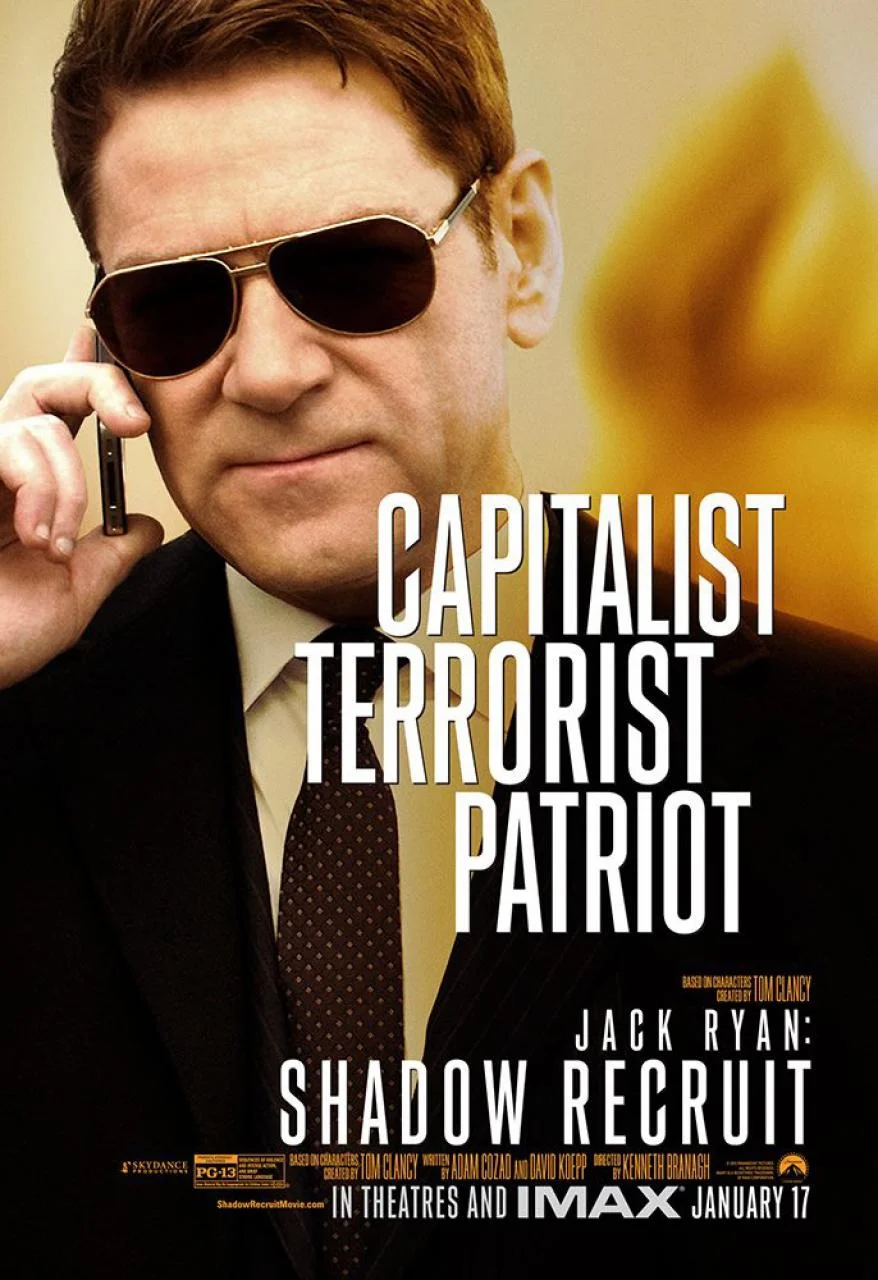 Chris Pine and Kenneth Branagh are the latest stars to have character posters released for Jack Ryan: Shadow Recruit, and I imagine they will be the last. The movie is set to be released on January 17th, 2014, and I'm really hoping that the movie turns out to be great! I've enjoyed most of the Jack Ryan films, especially Patriot Games and Clear and Present Danger. I doubt the movie will be as good as those, but it looks like it will at least provide some thrilling, action-packed entertainment.