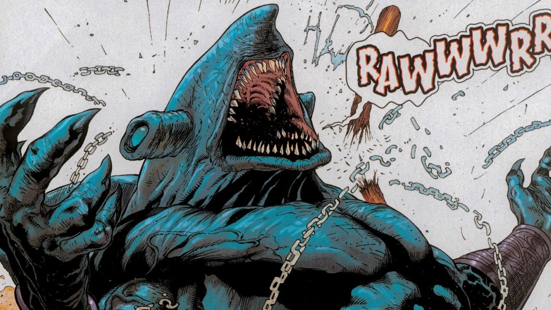 Nanaue a.k.a. King Shark, “is a super-villain and humanoid shark whose father is believed to be the so-called Shark God, though others dismiss him as merely a savage mutation.”