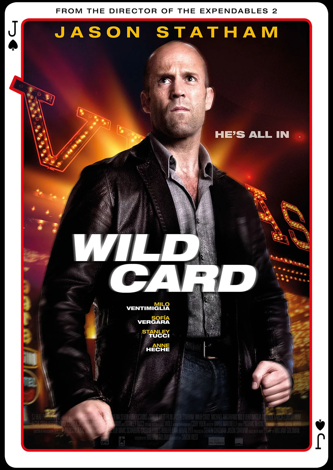 Jason Statham is back and getting violent with a bunch of Las Vegas thugs in his latest action thriller Wild Card, which is called Joker in the the UK. The movie is a remake of the 1987 film Heat with Burt Reynolds, and it was supposed to be directed by Brian De Palma before The Mechanic and The Expendables 2 director Simon West took it over.