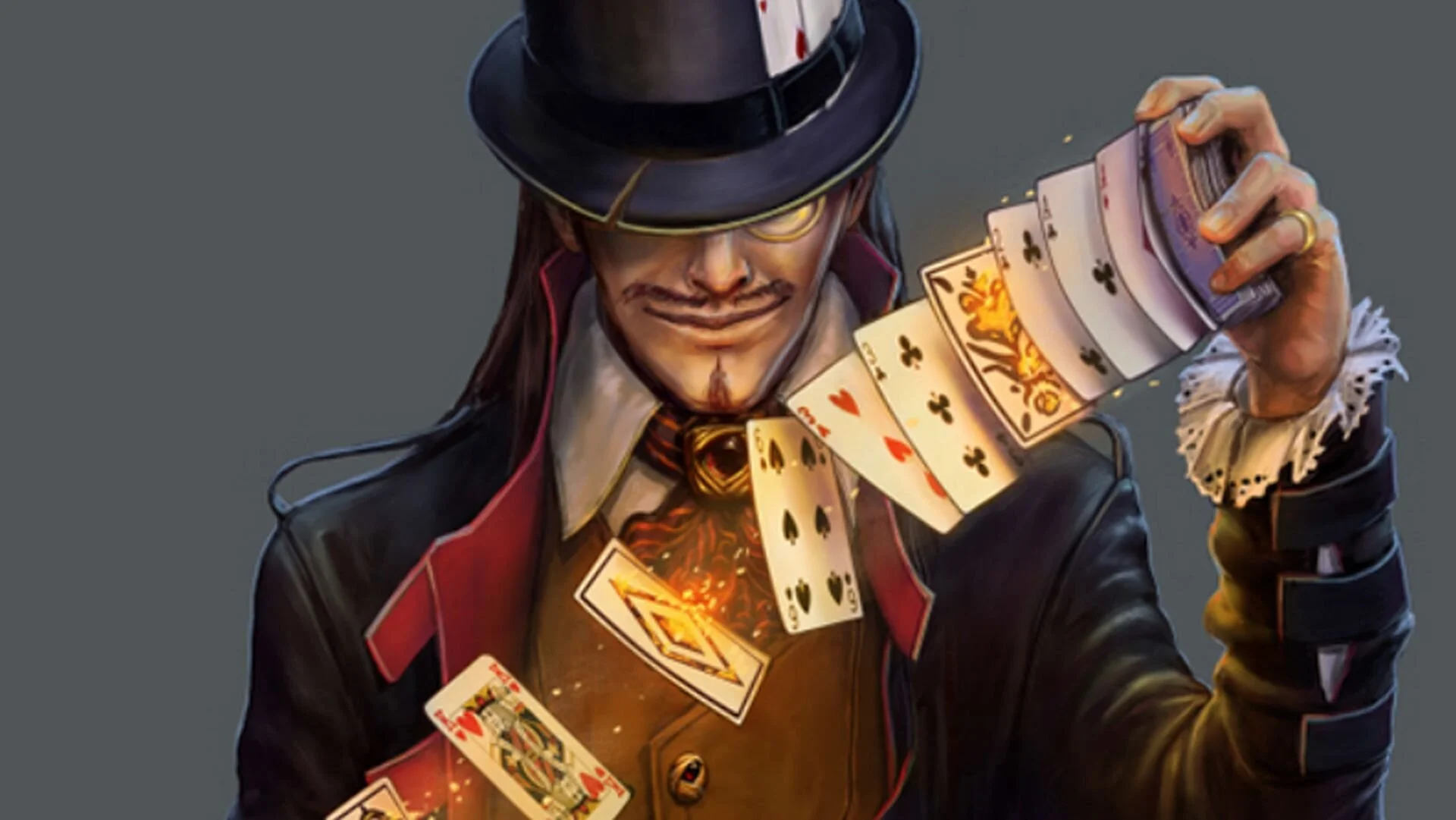 The Dealer is a spellcaster who uses a deckbuilding minigame to learn and prepare spells.,