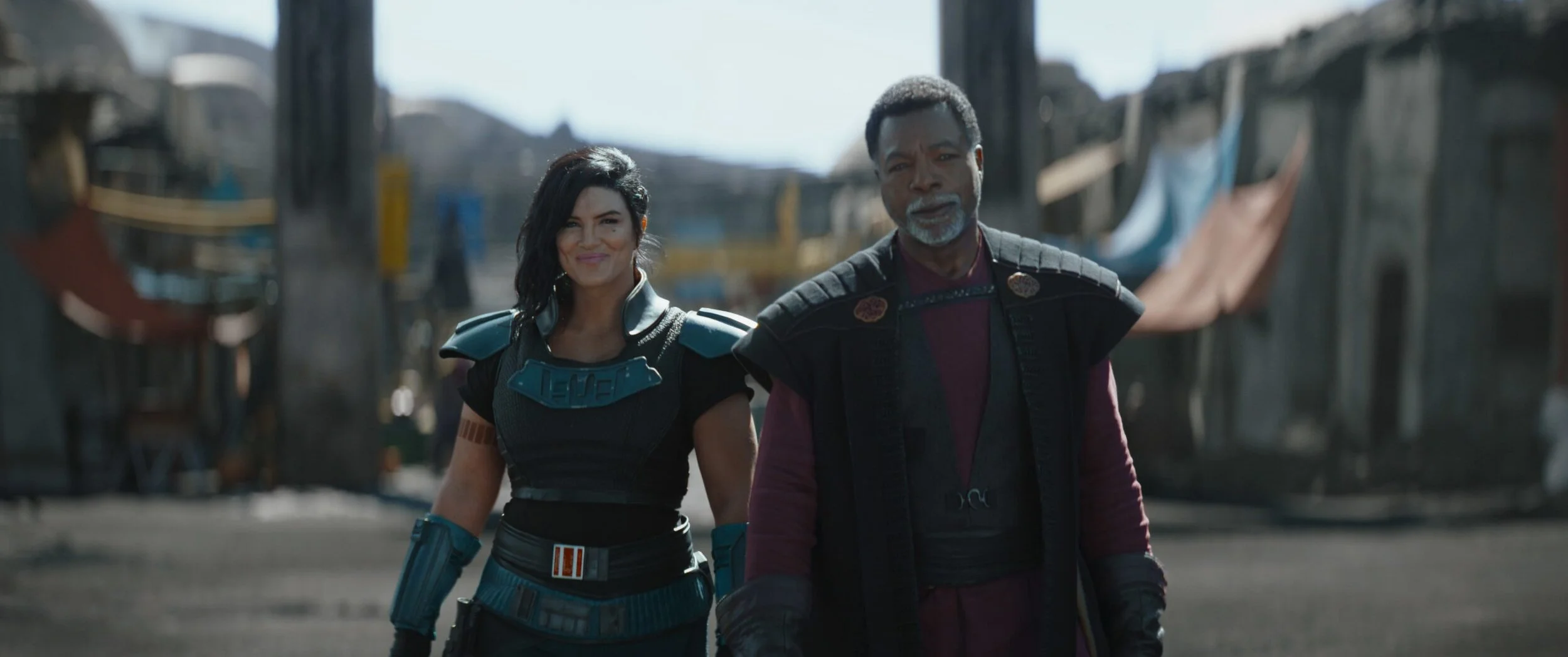 It’s on Nevorro that we learn that Cara Dune (Gina Carano) has become the new Marshall of the town, and the Mando meets up with her and Greef Karga (Weathers), who offers to have his ship fixed up after he helps clear out the town of Empire-occupation.