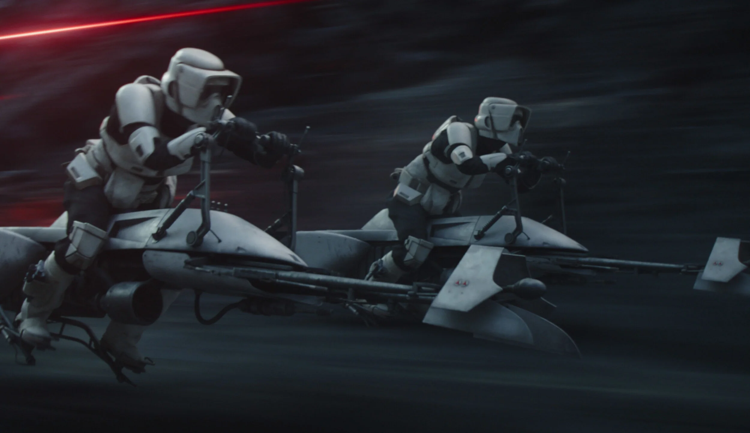They end up being chased down by a group of Stormtroopers on speeder bikes through some canyons, with Karga hopping on a big ass gun transport where he proceeds to blast one of the Stormtroopers who was on their tail. The others raced ahead out of range of the transport blaster.