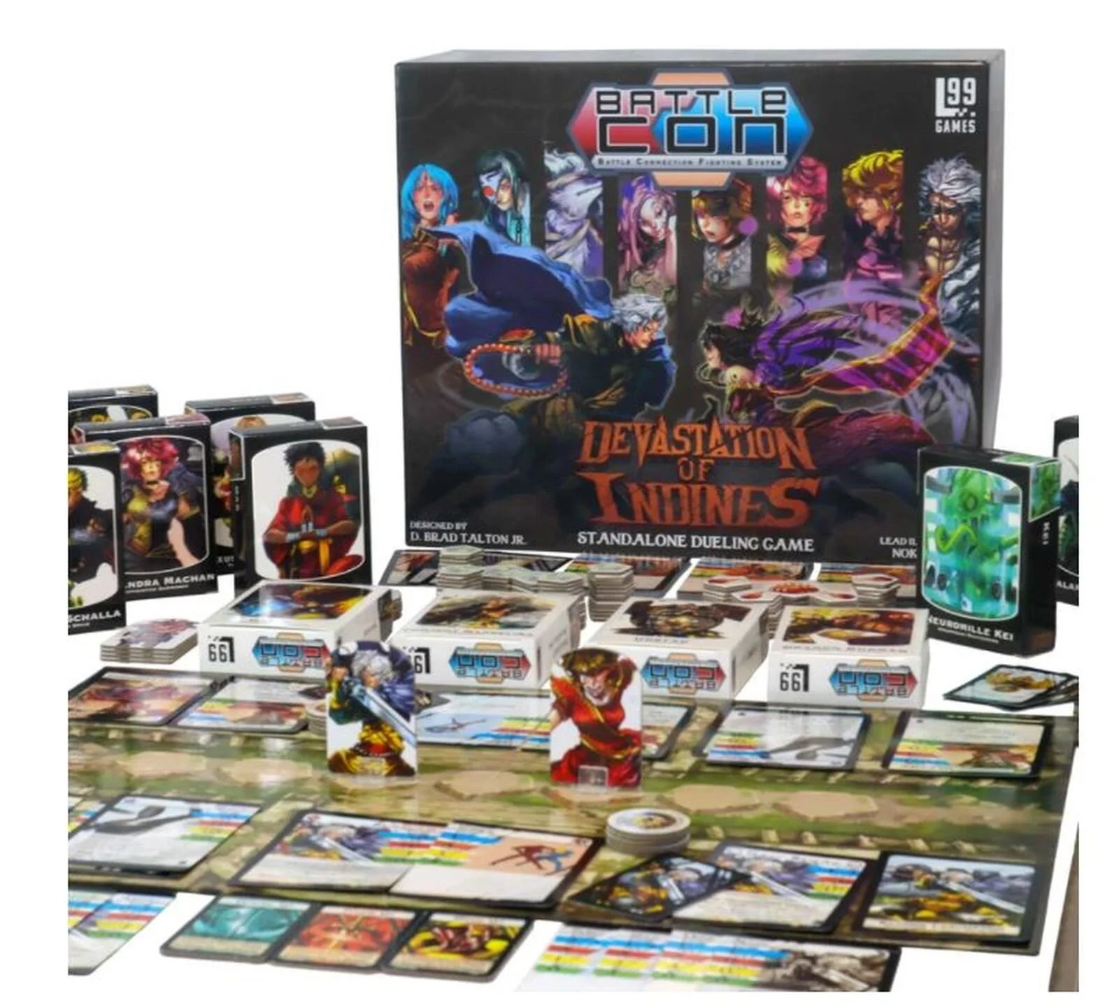 Ten years ago, Level 99 Games launched BattleCON. This dueling card game has garnered quite the following. The wide array of characters available allow for a variety of strategies that can, in theory, be appealing for a wide range of gamers. Well, to celebrate 10 years, players can meet BattleCON: Devastation of Indines, Trials of Indines, and Wanderers of Indines. This marks the fourth edition of BattleCON that has been updated with two new fighters, clarified play modes, balance changes, and even some updates to the templates. Oh, you’ll also get Force Counters, Life Counters, fighter tuckboxes, and more. I’ve been interested in trying out BattleCON for a while now. Maybe this is finally my chance. Reflecting on the success of BattleCON and the company in general, D. Brad Talton Jr. of Level 99 Games said: