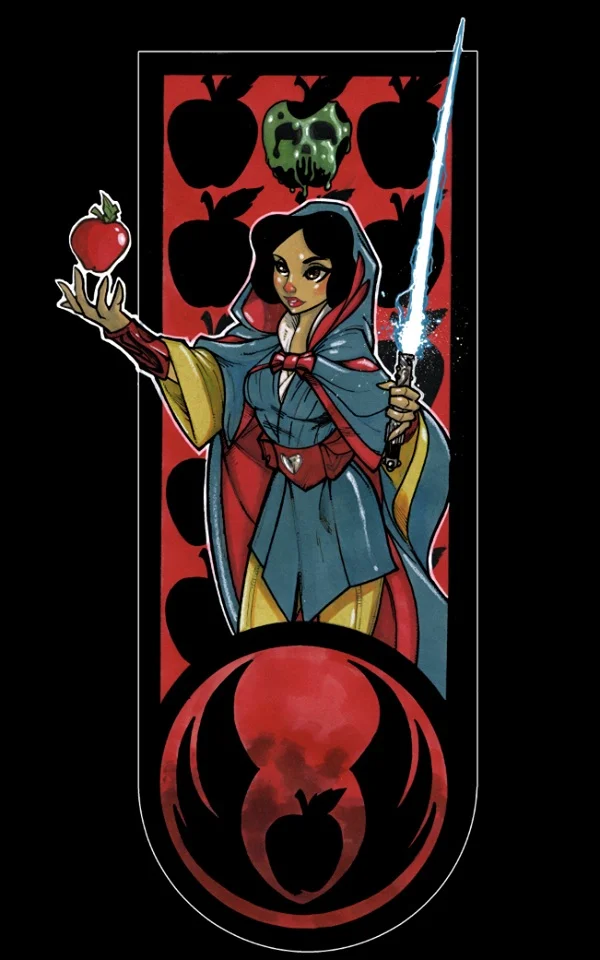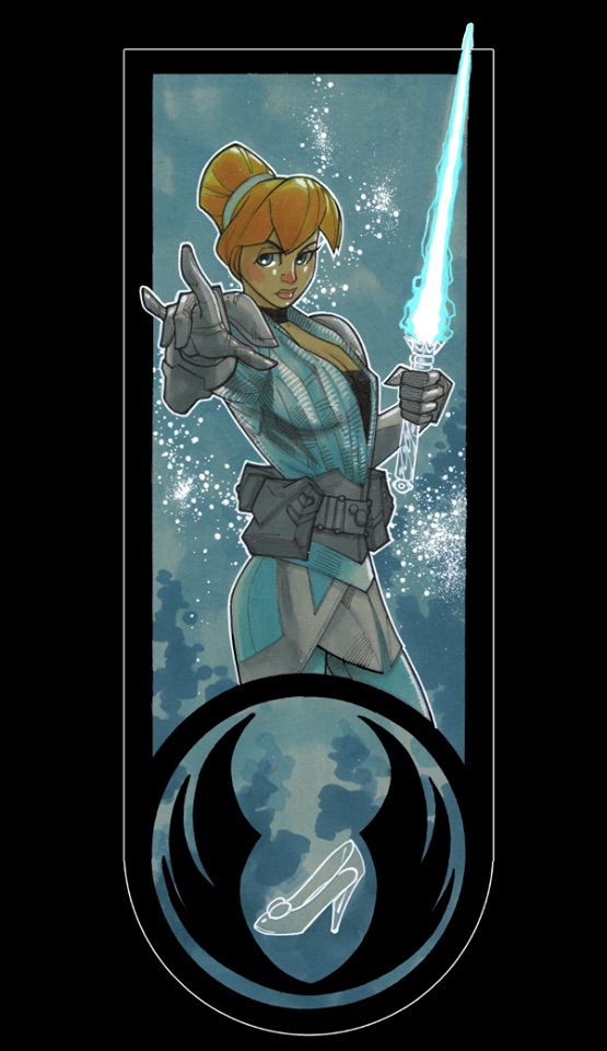 Artist Tome Hodges is the creator of this kickass series of Jedi Disney princesses. All of these Star Wars and Disney mashup characters designs are available on T-shirts and hoodies that you can buy here if you're interested.