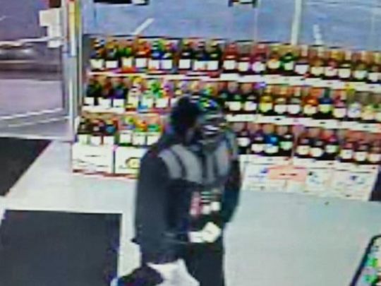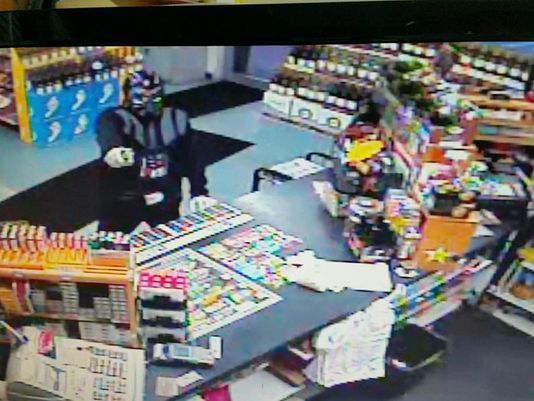 A store employee says he threw a wine bottle at the suspect, who wearing a Darth Vader costume. The suspect then ran out of the store.