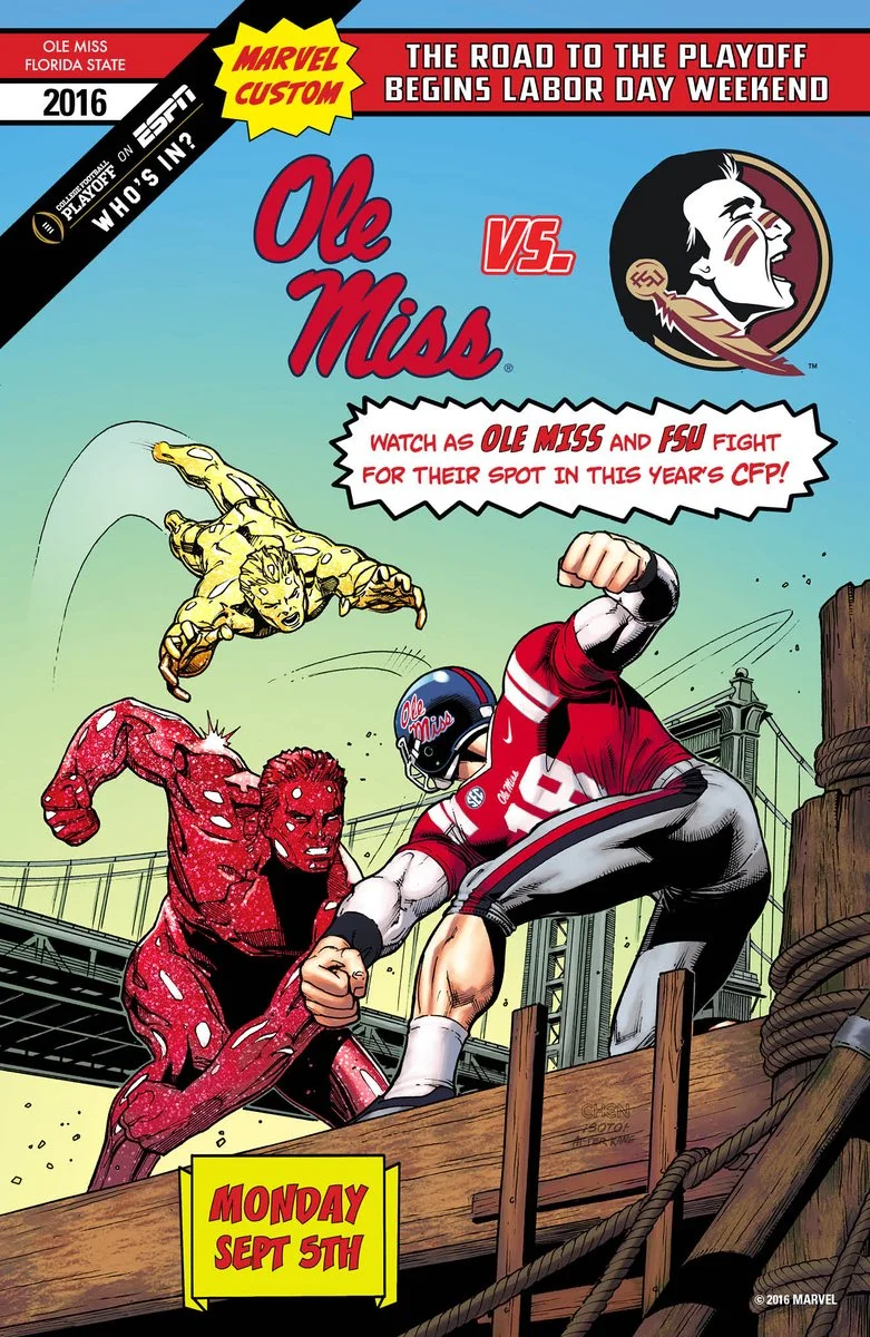 For those of you who follow sports, a new season of college football is about to begin. To celebrate the first week of college football Marvel has created a series of special edition "Road to the College Football Playoffs" comic book covers.