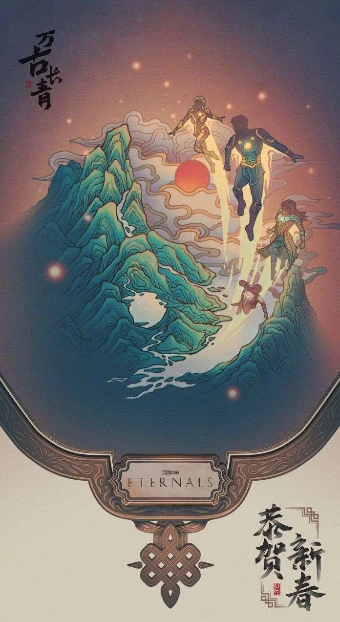 In celebration of the Chinese New Year, Marvel Studios has shared a series of three pieces of poster art for their highly-anticipated upcoming films Eternals, Black Widow, and The New Mutants. Each poster has a unique and beautiful Chinese art style. You can check out each of the posters below.