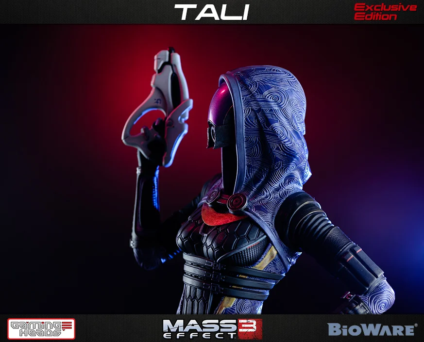Tali'Zorah is one of your most steadfast allies in the Mass Effect series, so it's much to my delight that Gaming Heads decided to make her the third in their series of statues based on the franchise. Coming in at 19" tall, the detail on Tali's armor and accessories is extensive, and I couldn't be happier with how this turned out. The regular edition comes with her easily identified arc pistol, but the exclusive version gets you a swappable Scorpion pistol to boot. Props on the pose as well, with just the right amount of "Just give me a reason." You can put in your pre-order now for $339.99, or break it up into three payments, so make sure to head on over to their site if you're interested. Check out some additional photos down below.
