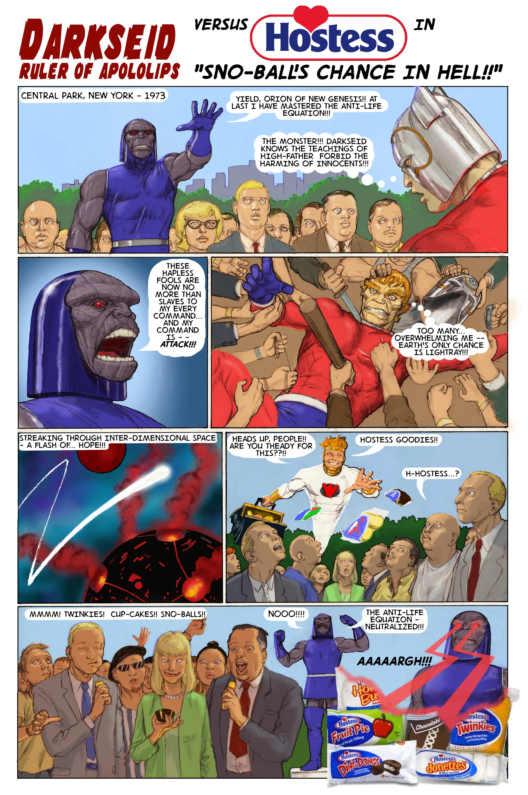 During the 1970s, Marvel and DC comics created some fun comic book advertisements for Hostess. You can see several of these retro ads here. As a way of paying tribute to these, CBR's The Line is Drawn had several artists create a collection of modern day Hostess comic book ads. Here are a few of them for you to enjoy.
