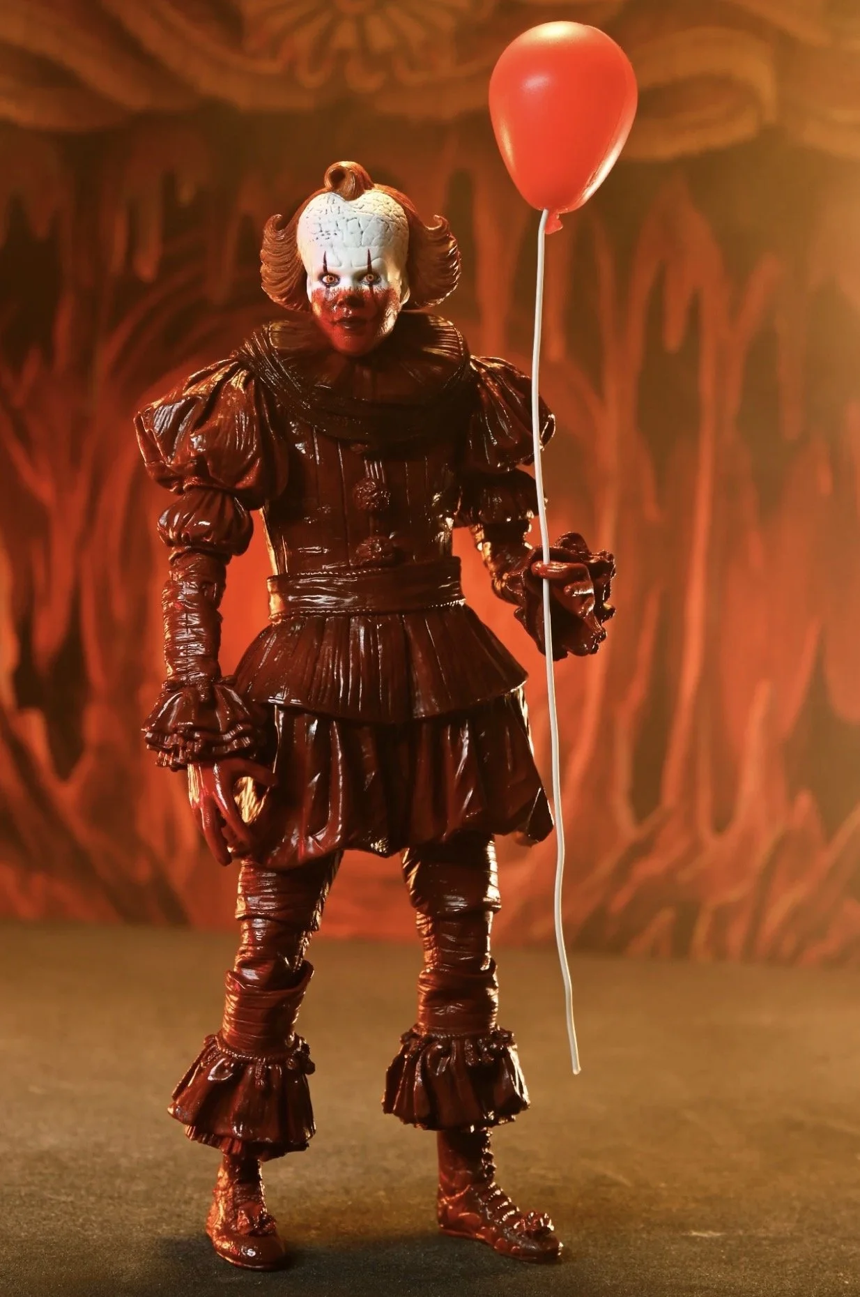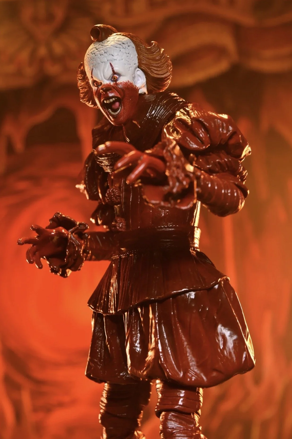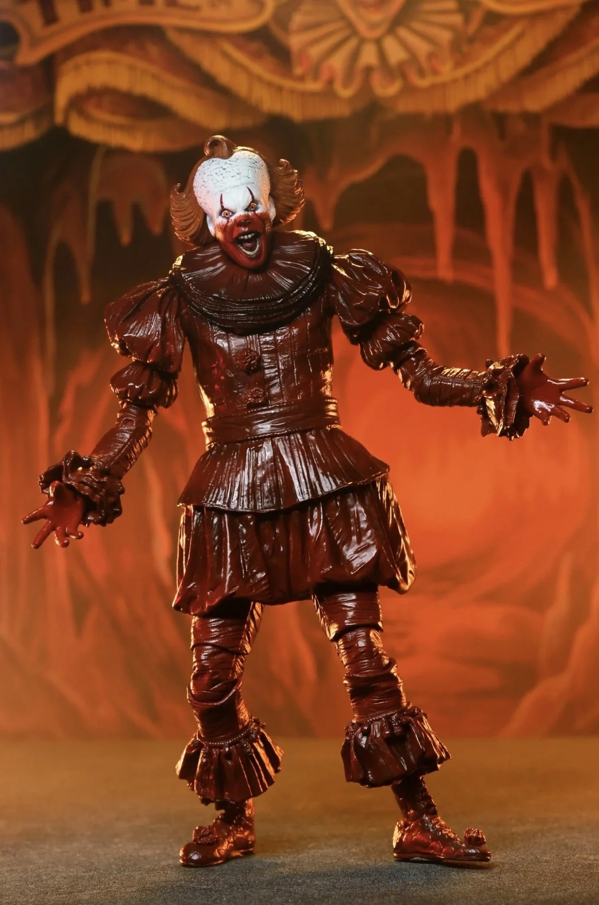 What follows is Pennywise’s final, vicious run through 1962 Derry, and it leaves him looking especially horrific. The clown’s lower half is drenched in a dark, ruddy stain, the result of a whole lot of blood and guts from his latest victims. That disturbing look is exactly what NECA captured here, and the result is equal parts disgusting and awesome.